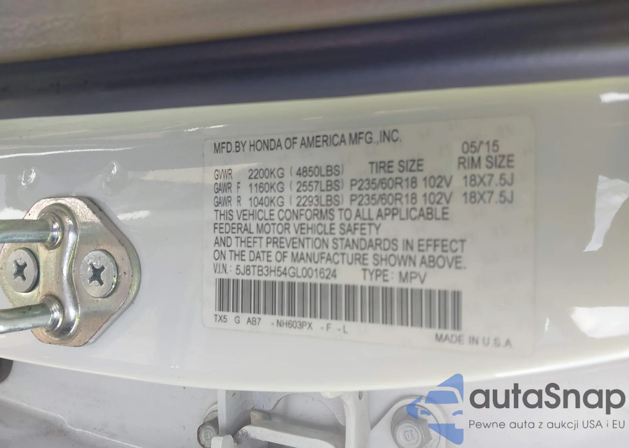 • VIN 5J8TB3H54GL001624