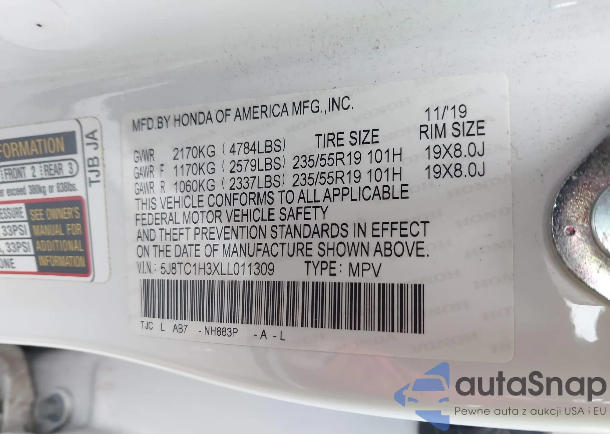 • VIN 5J8TC1H63KL015517