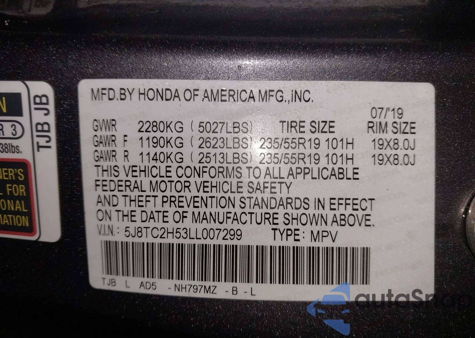 • VIN 5J8TC2H53LL007299