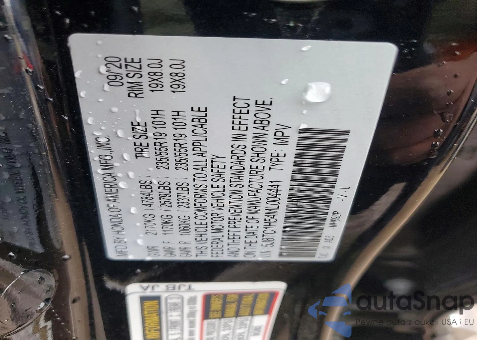 • VIN 5J8TC1H54LL005796