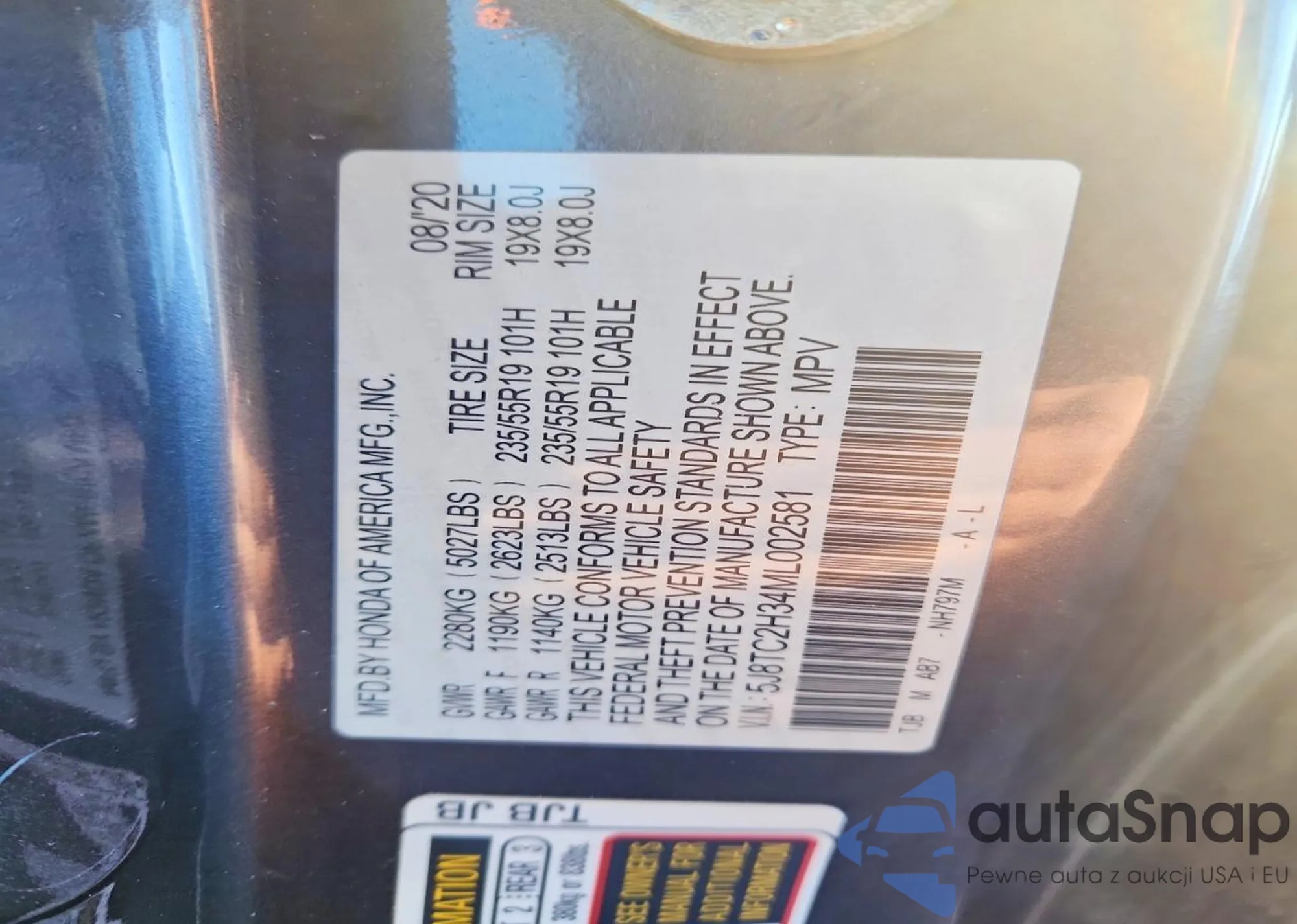 • VIN 5J8TC2H34ML002581