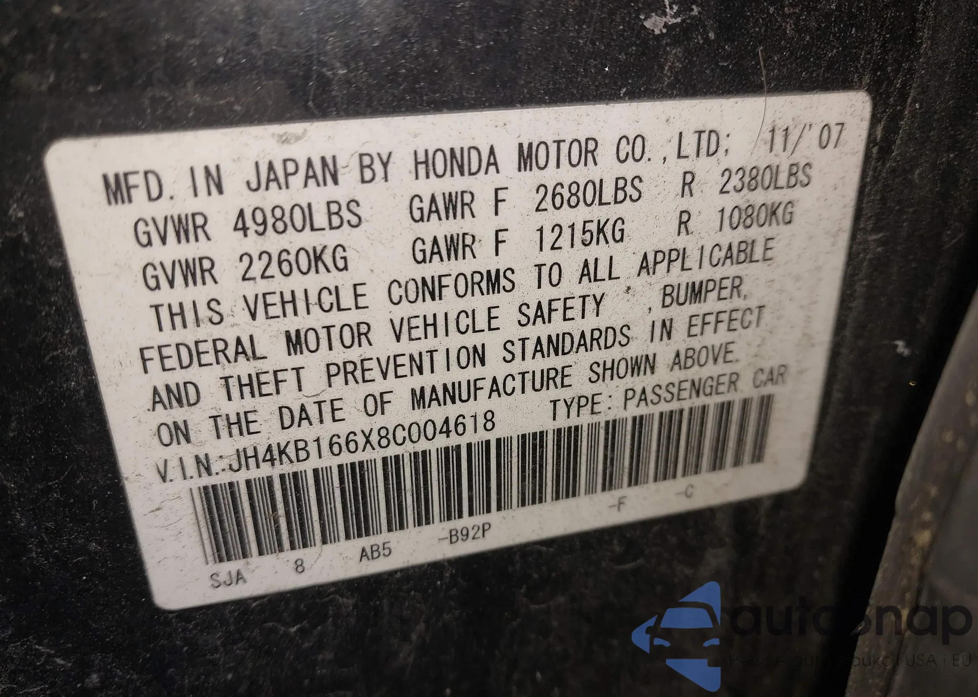 • VIN JH4KB166X8C004618