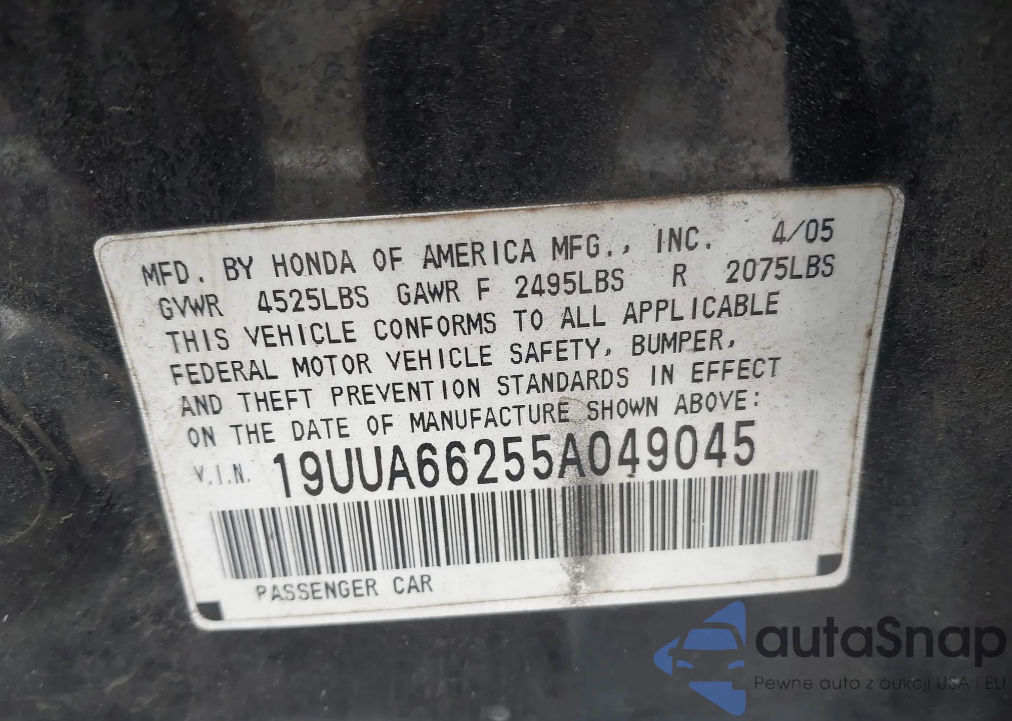 • VIN 19UUA66255A049045