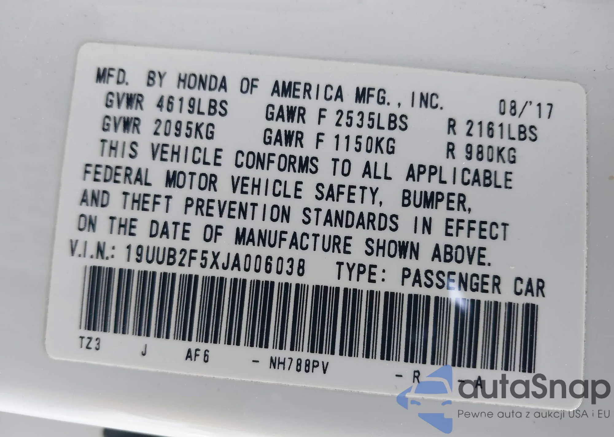 • VIN 19UUB1F38JA008010