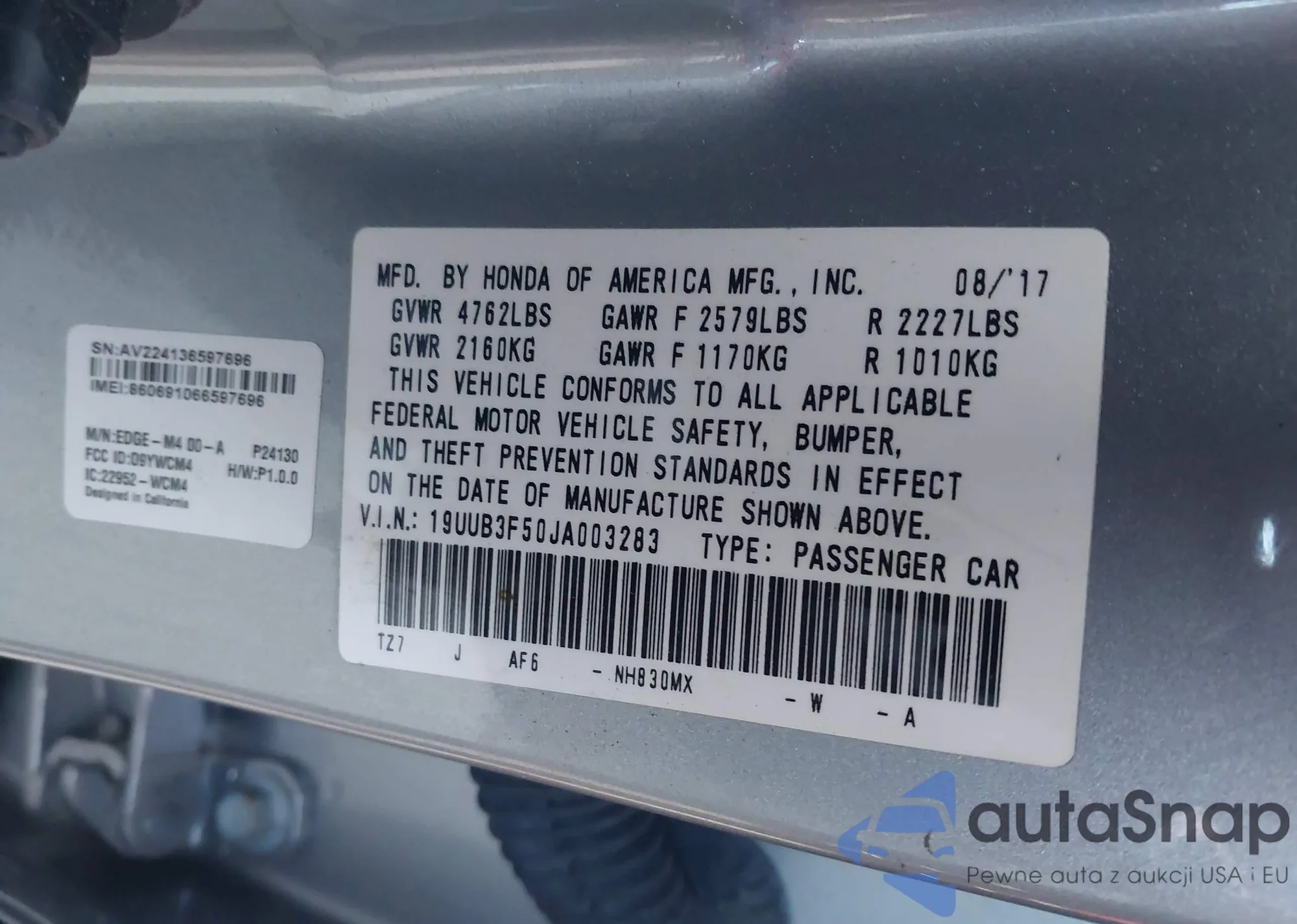 • VIN 19UUB3F50JA003283