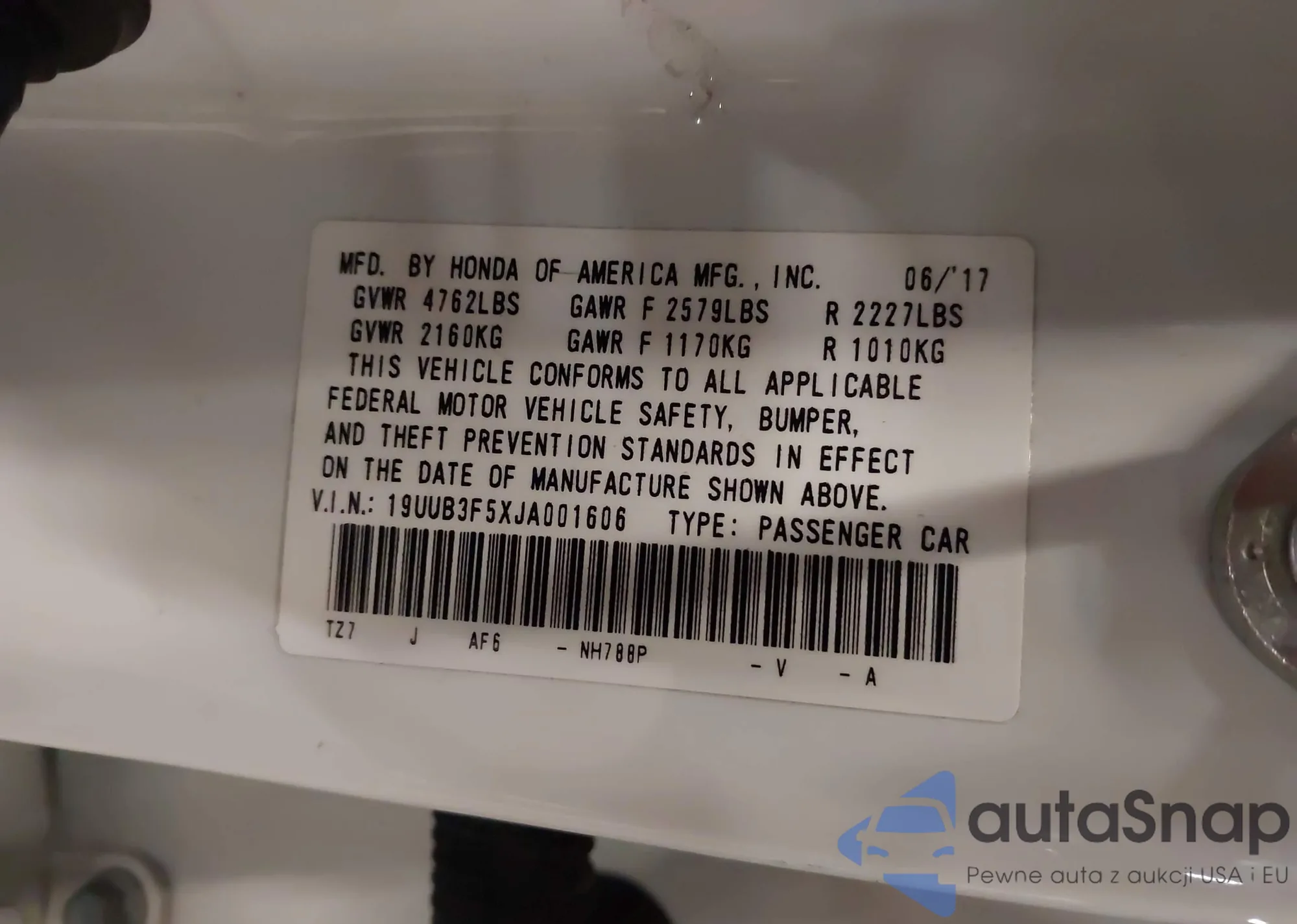 • VIN 19UUB3F64JA002176