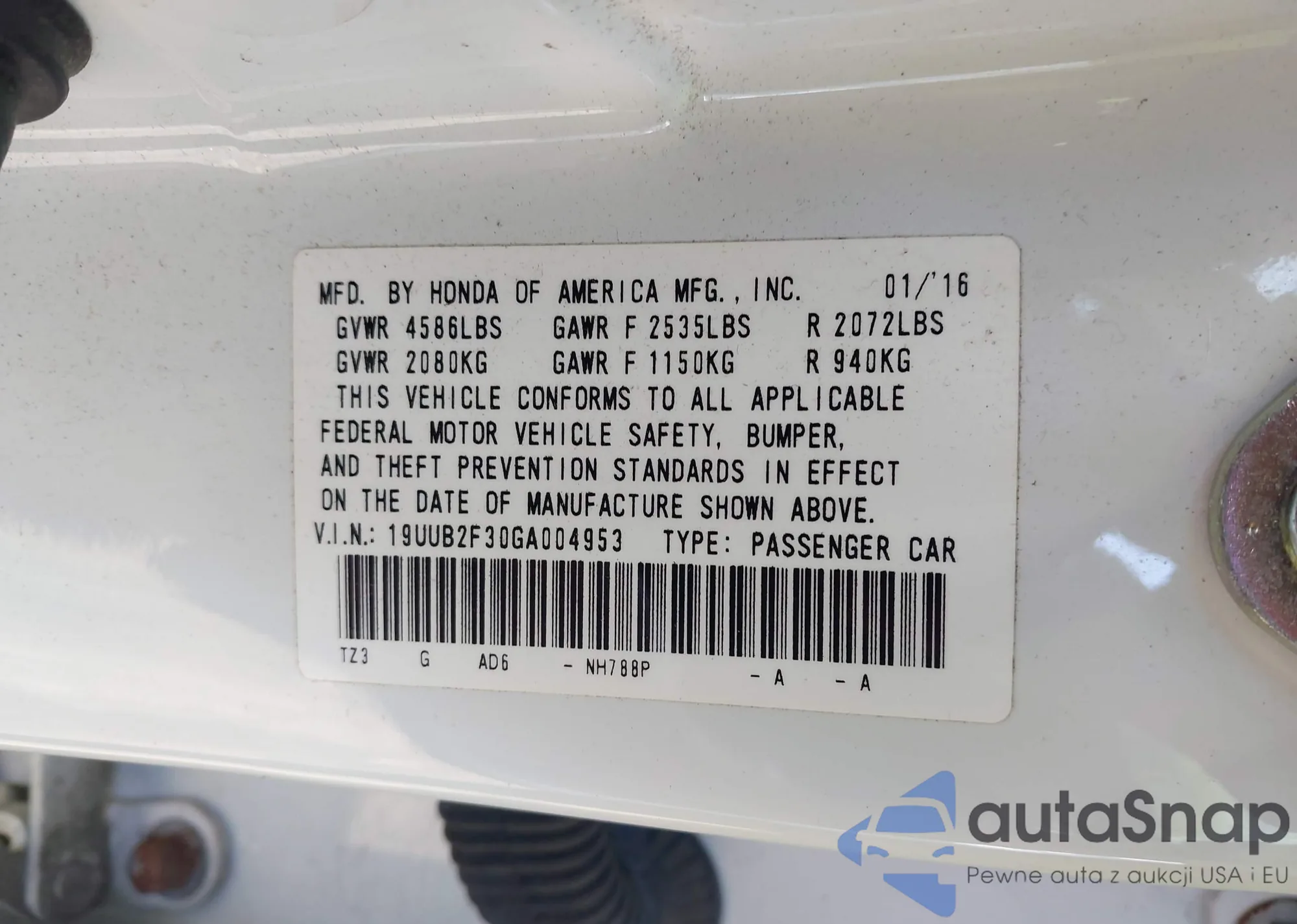 • VIN 19UUB2F30GA004953