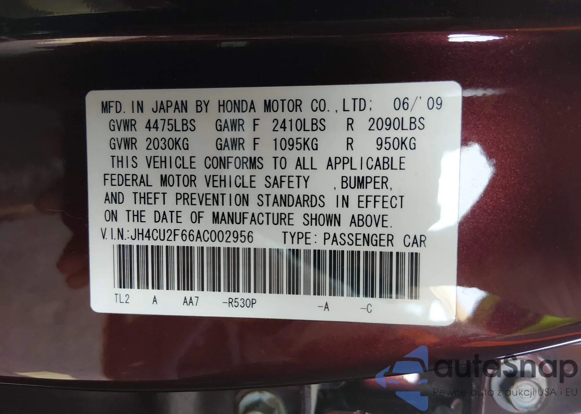 • VIN JH4CU2F66AC002956