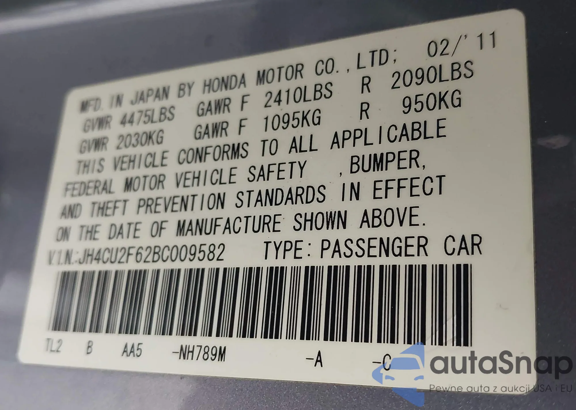 • VIN JH4CU2F62BC009582