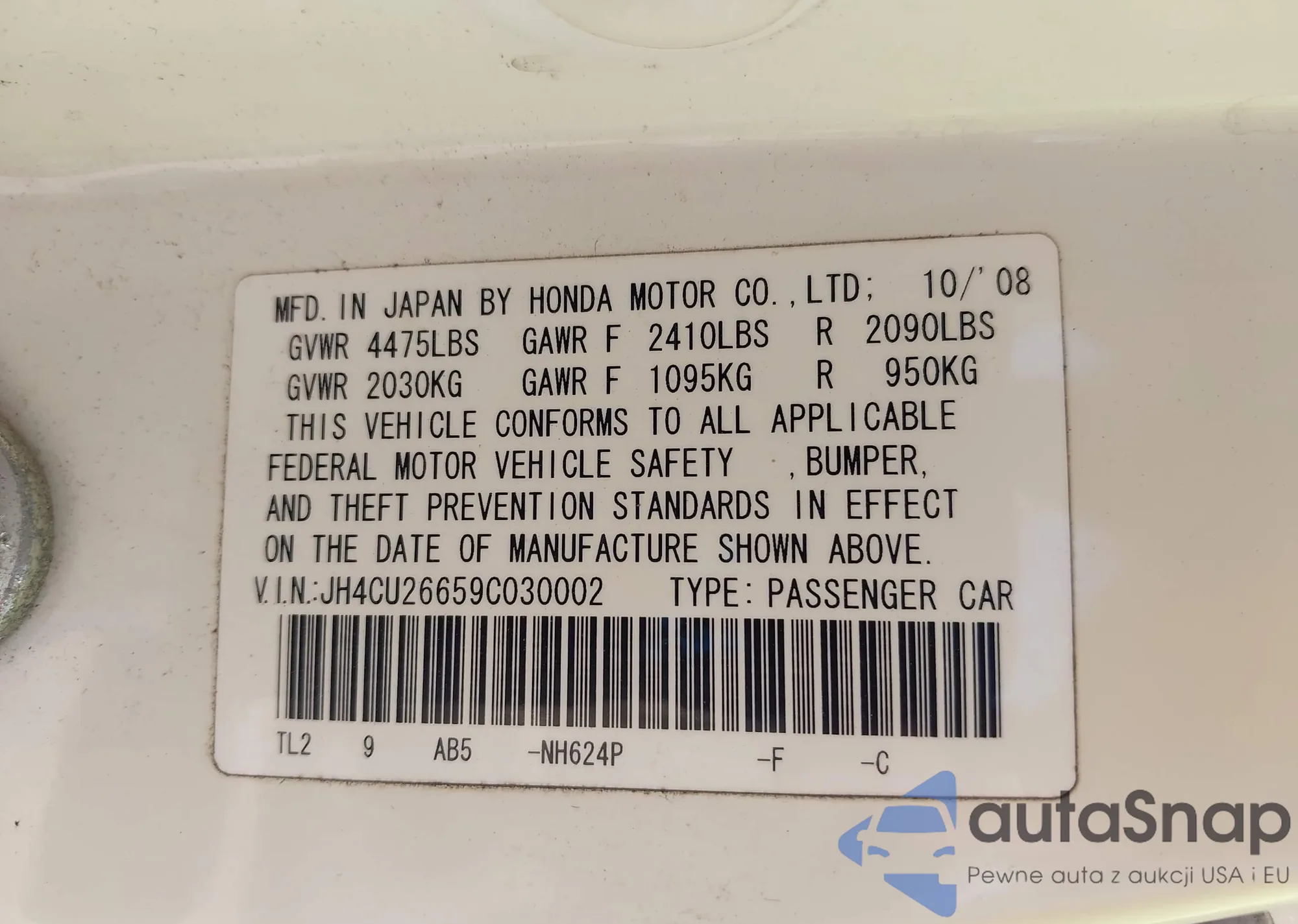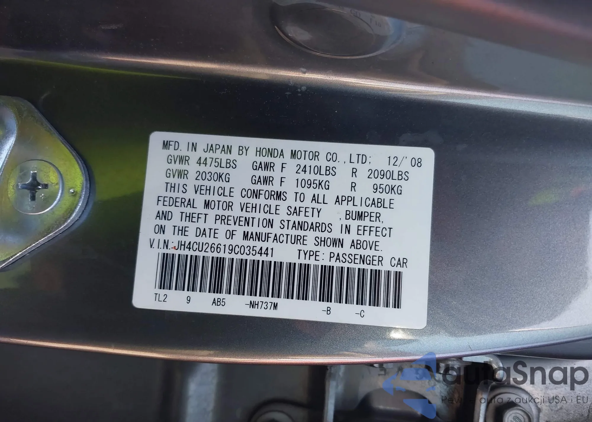 LOT: 43786391 VIN: JH4CU26619C035441