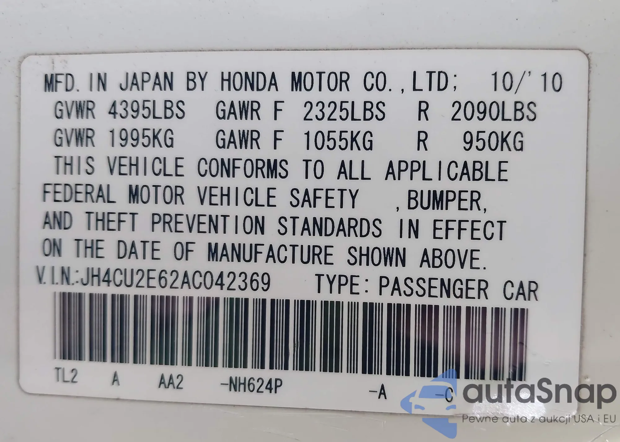 • VIN JH4CU2E62AC042369