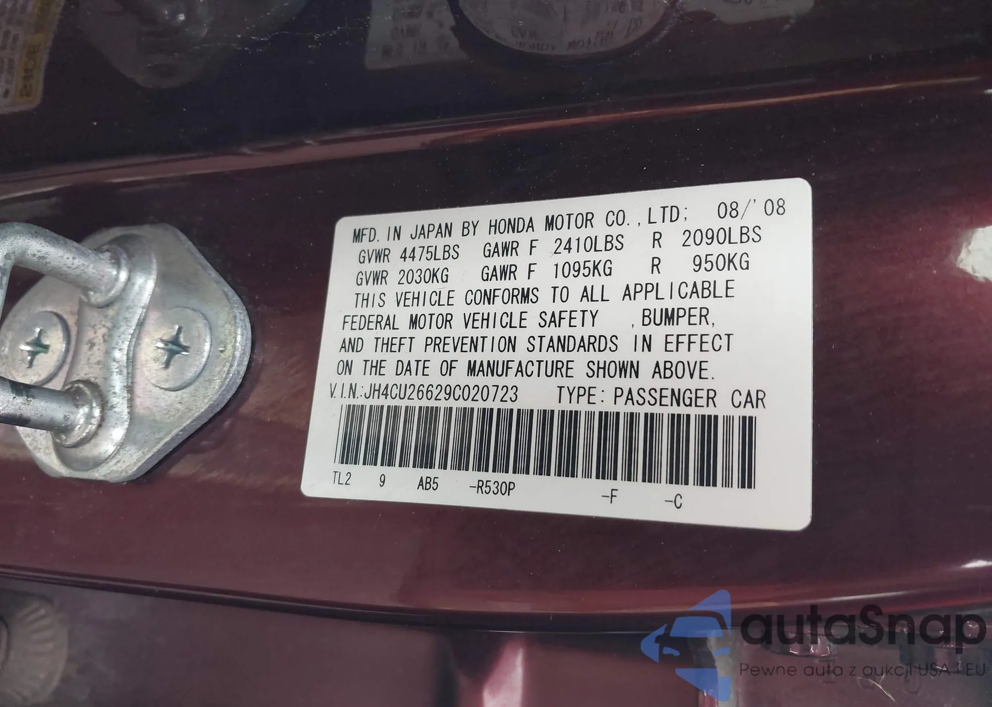 • VIN JH4CU26629C020723