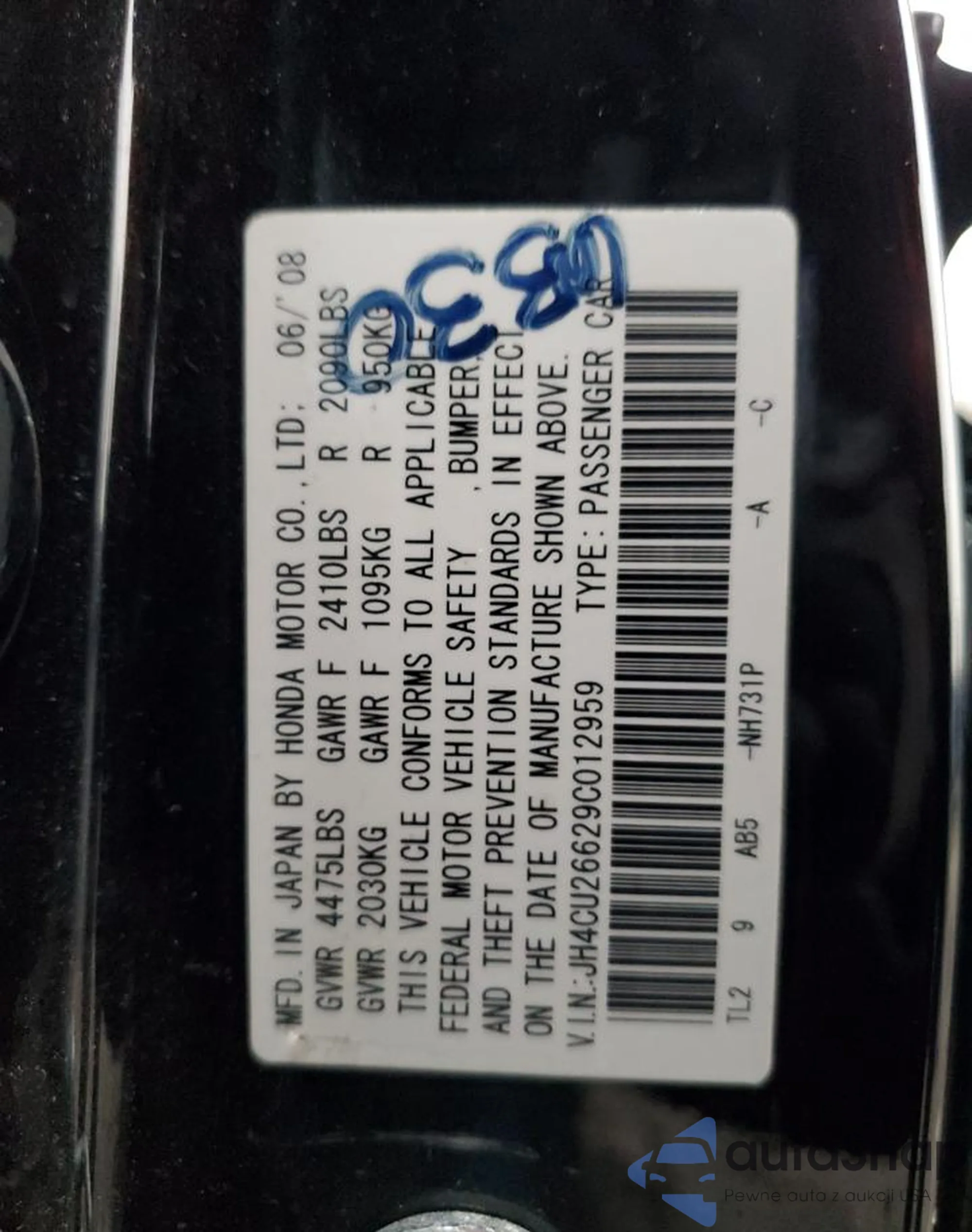 • VIN JH4CU26629C012959