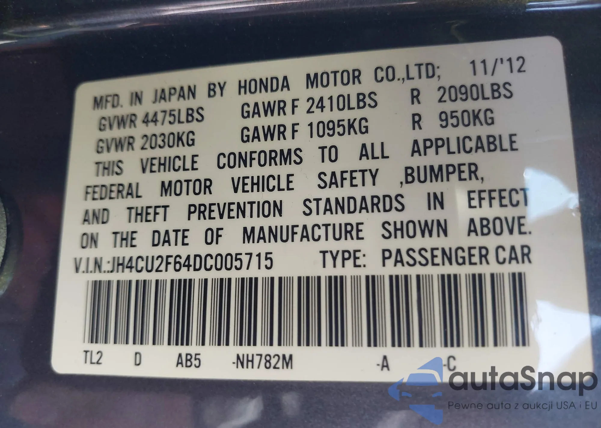 • VIN JH4CU2F64DC005715