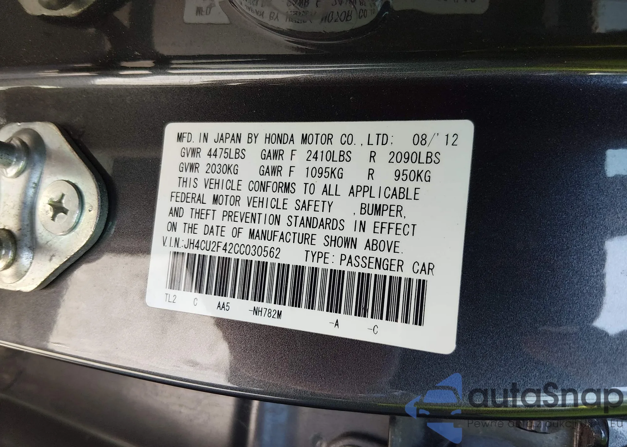 • VIN JH4CU2F42CC030562