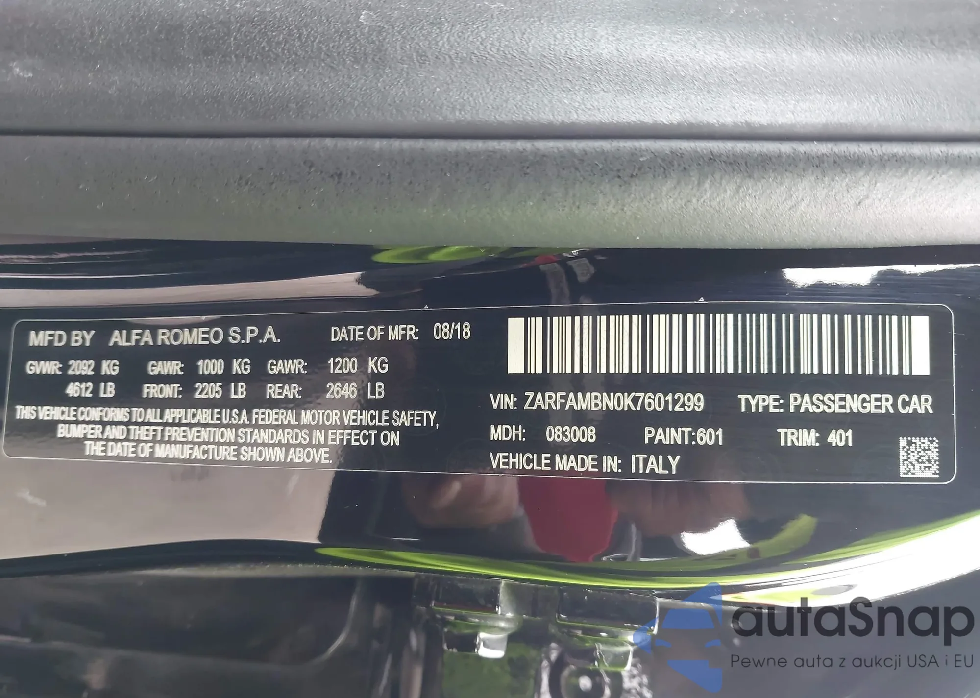 • VIN ZARFAMBN0K7601299