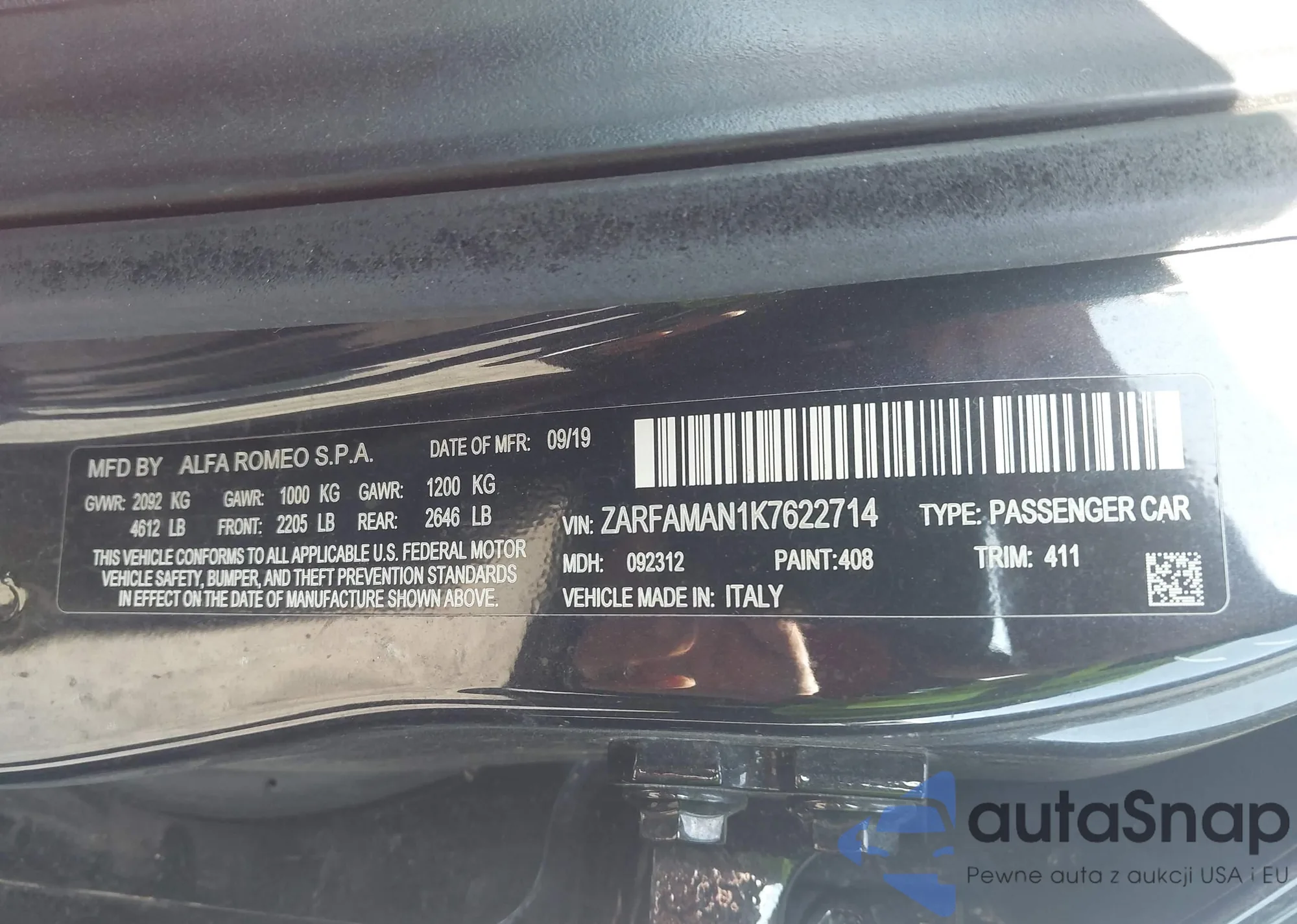 Looking to buy an Alfa Romeo from the USA? Autasnap is your go-to service for importing vehicles. We offer 'turnkey' and 'home delivery' options, allowing you to choose what suits you best. Our team guides you through every step, including repairs, ensuring that your Alfa Romeo arrives in perfect condition in Poland.