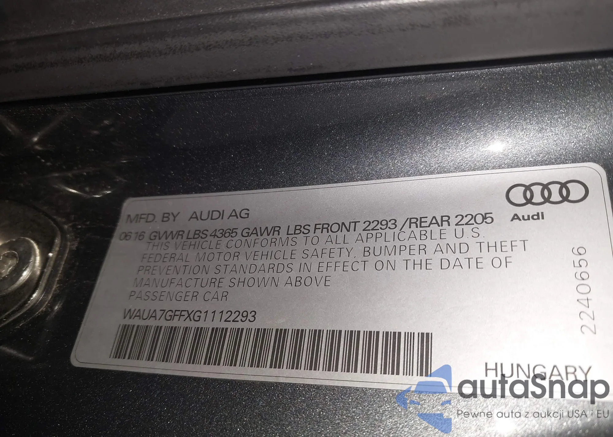• VIN WAUA7GFFXG1112293