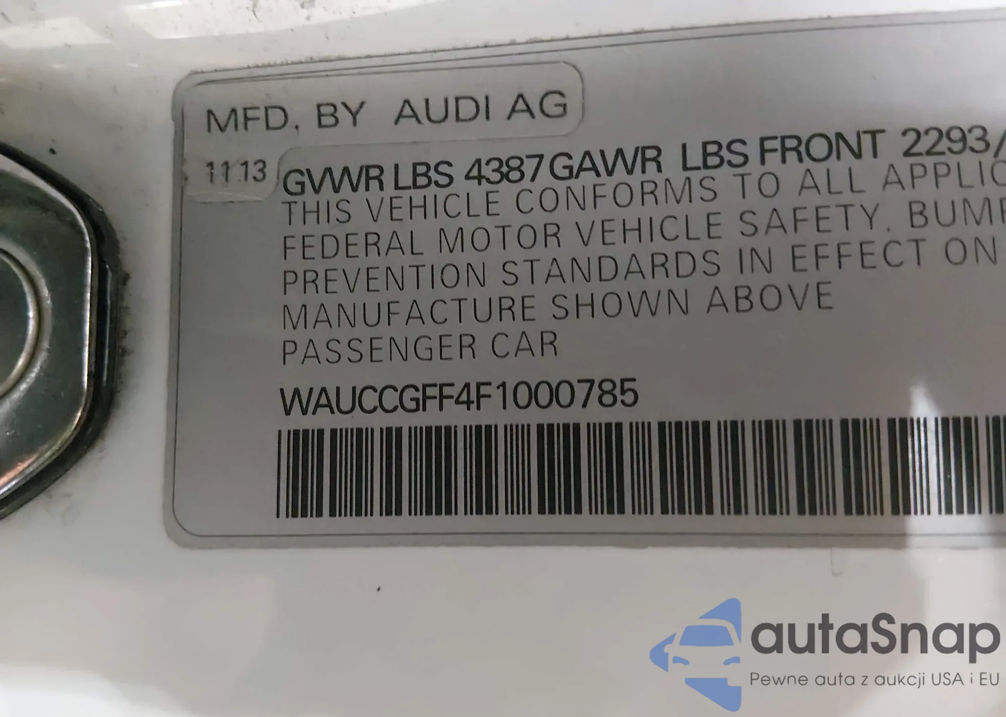 LOT: 44303340 VIN: WAUCCGFF4F1000785