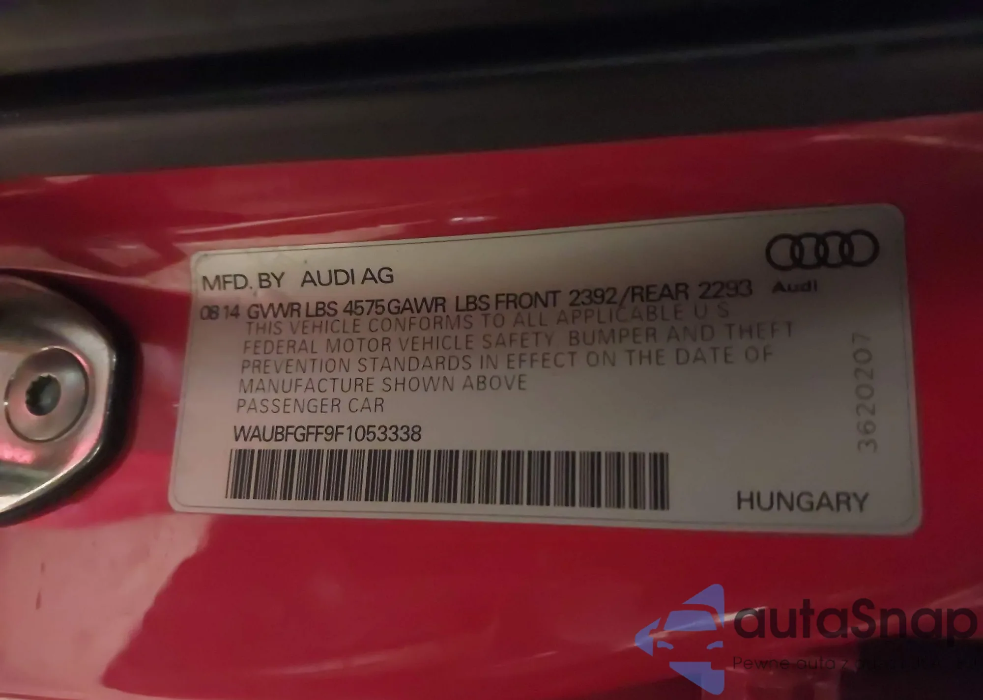 LOT: 44306321 VIN: WAUBFGFF9F1053338