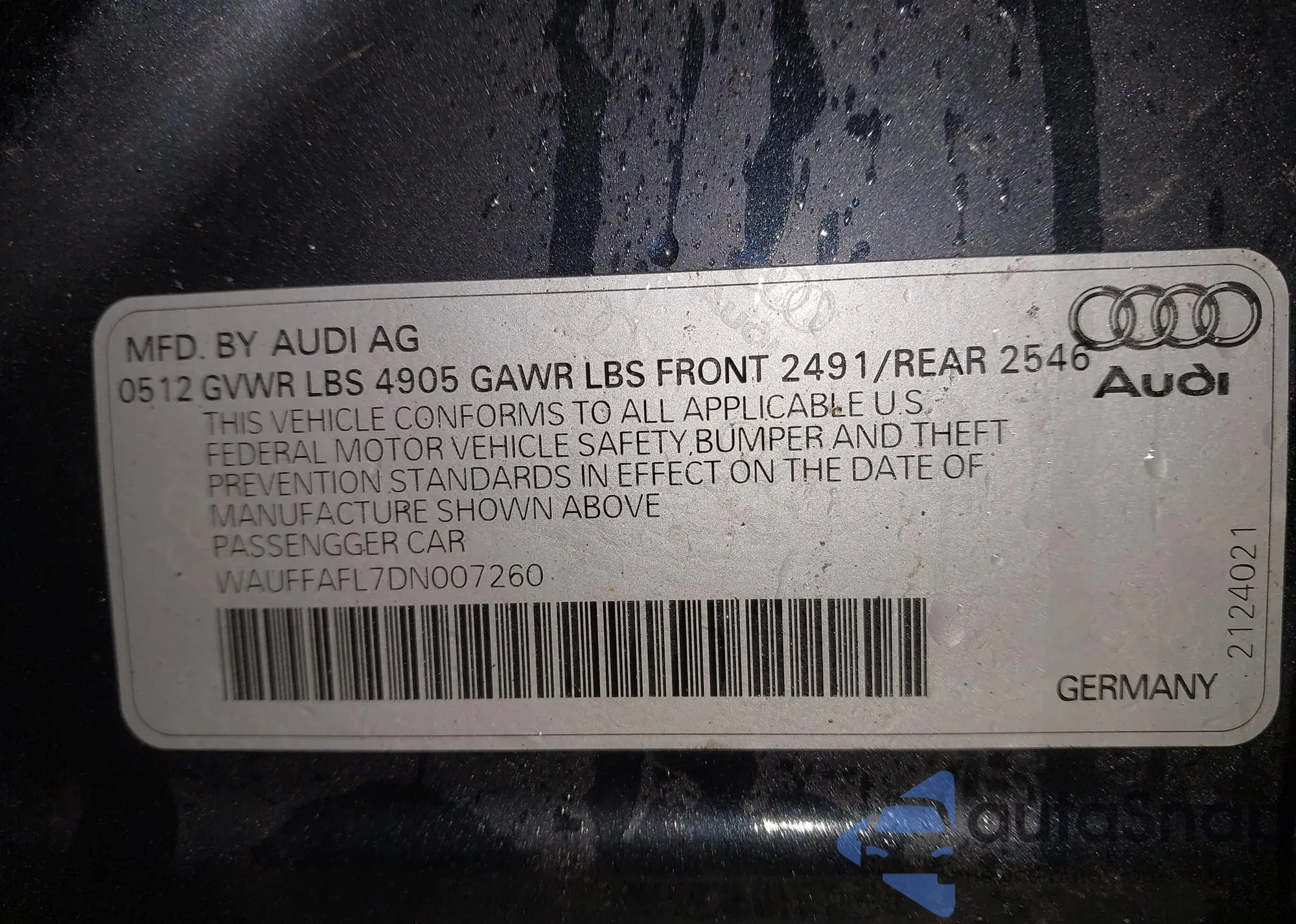 • VIN WAUFFAFL7DN007260