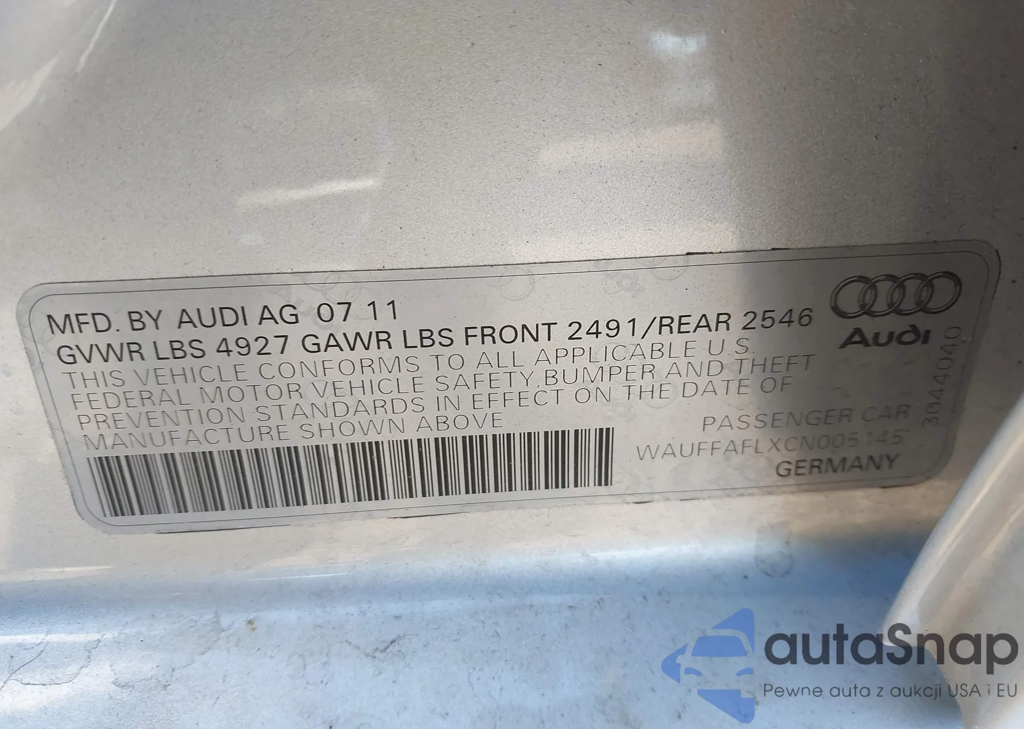 LOT: 44058043 VIN: WAUFFAFLXCN005145