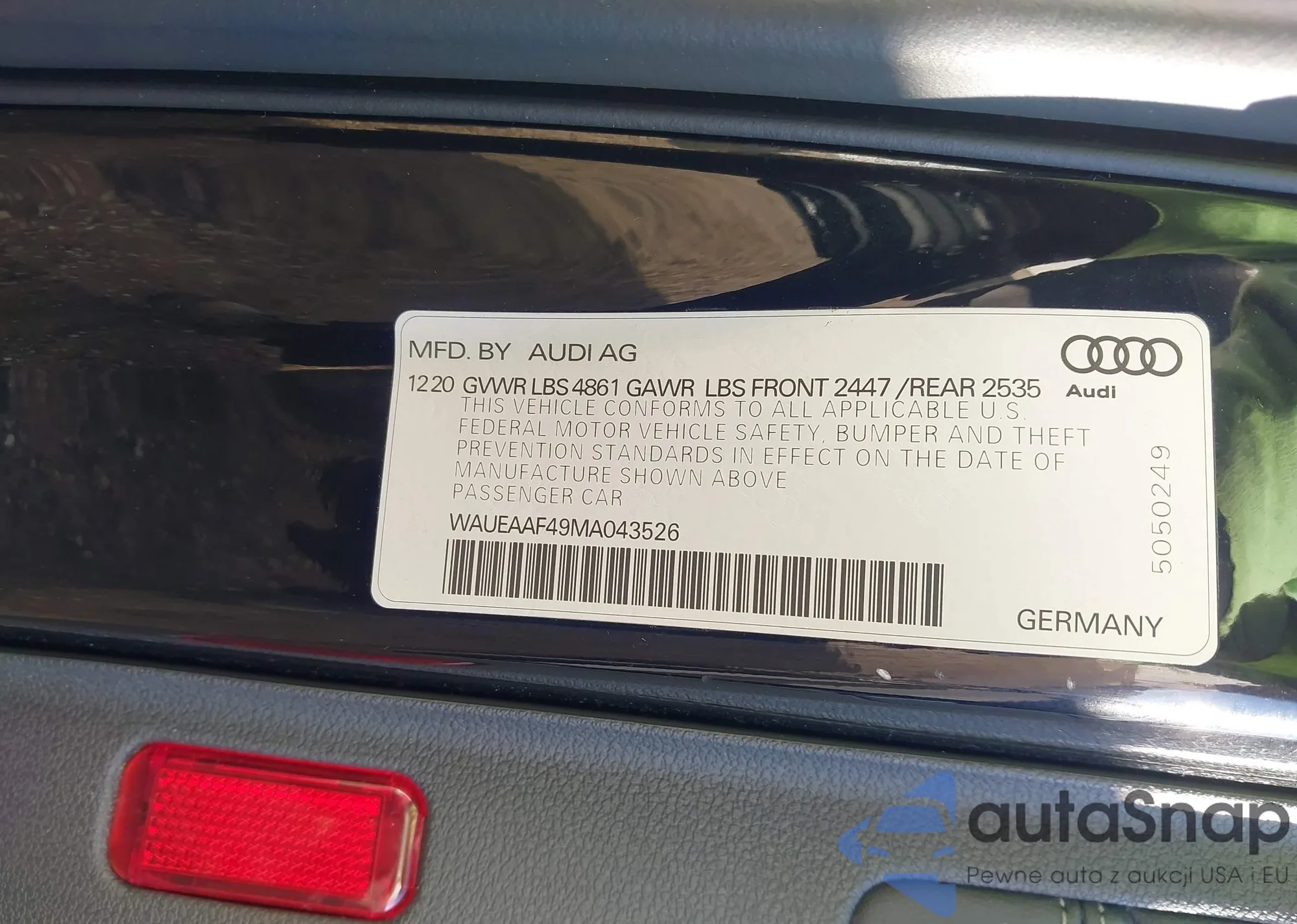 LOT: 43636547 VIN: WAUEAAF49MA043526
