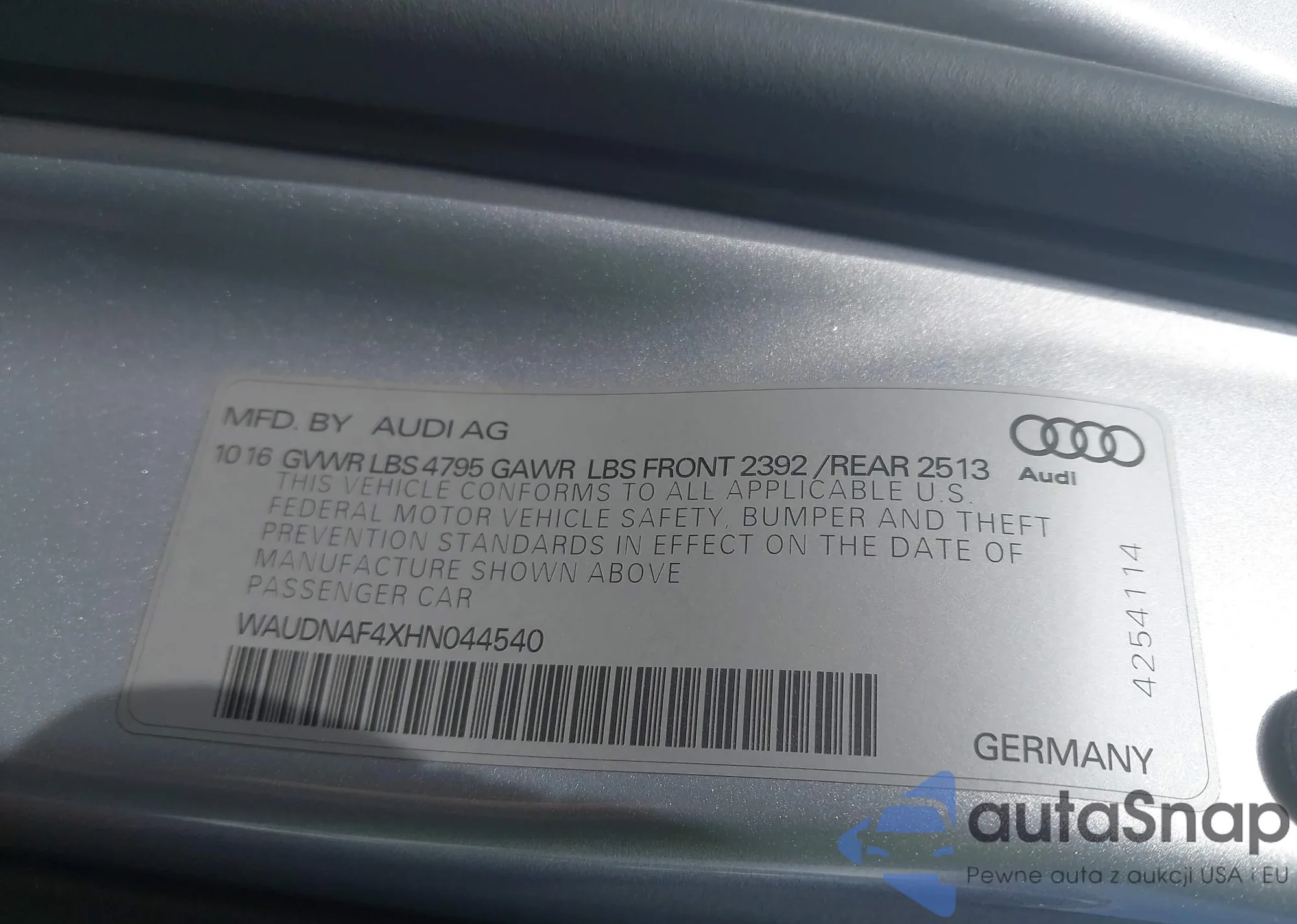 LOT: 44038284 VIN: WAUANAF4XHN037610