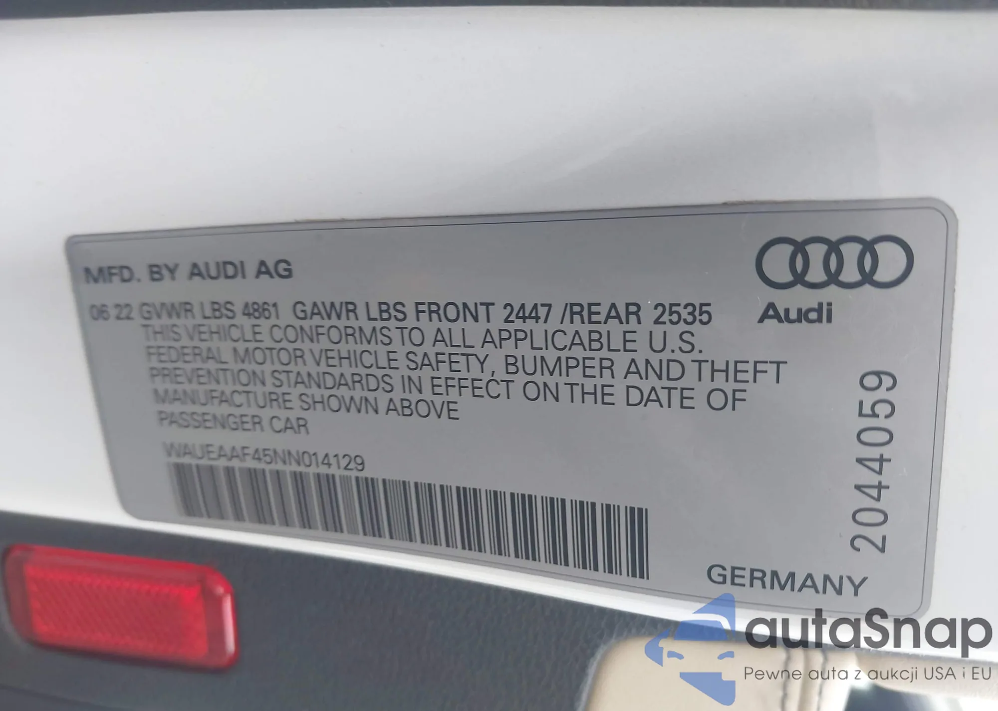 LOT: 44109853 VIN: WAUEAAF45NN014129