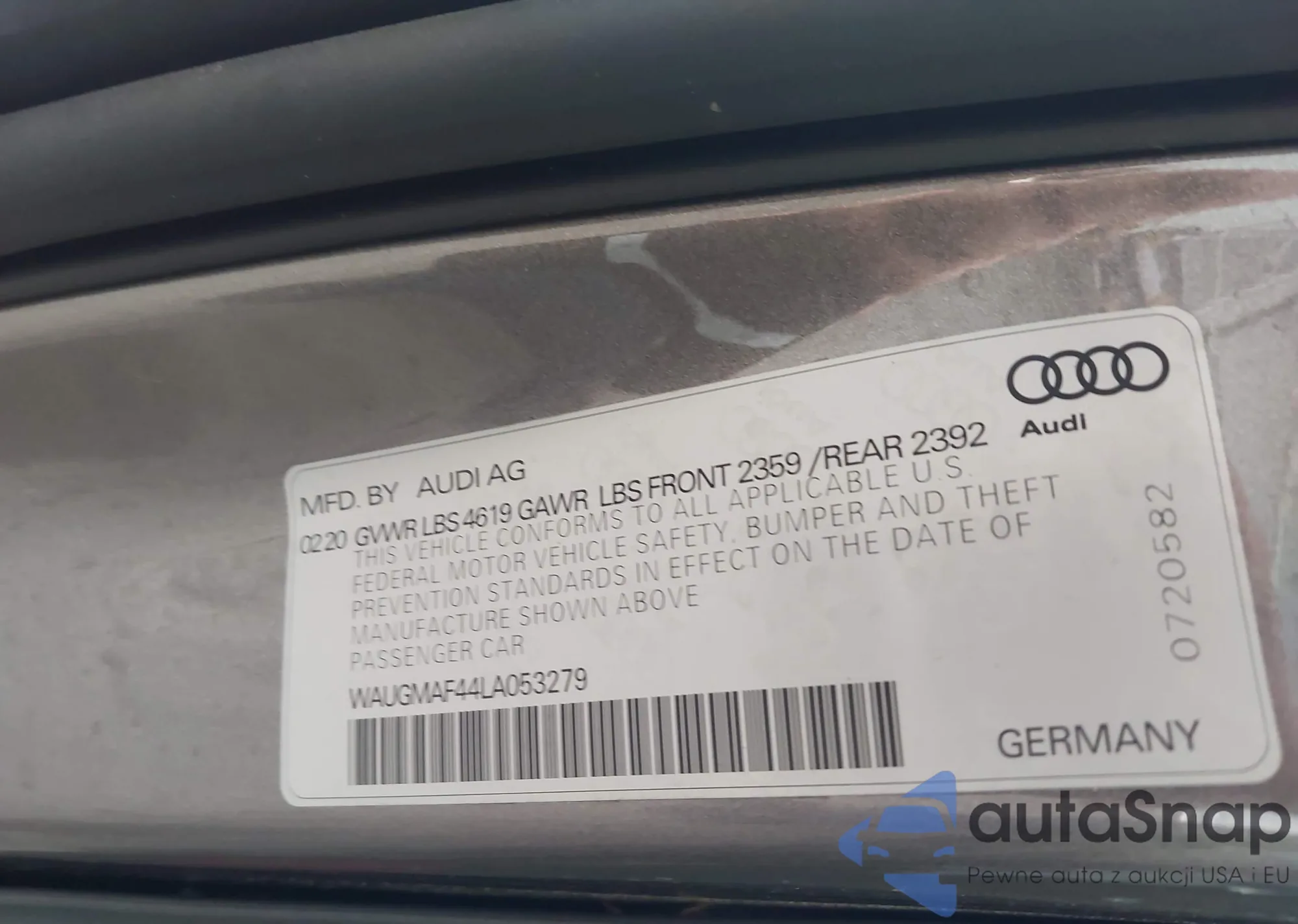 LOT: 44114793 VIN: WAUGMAF44LA053279