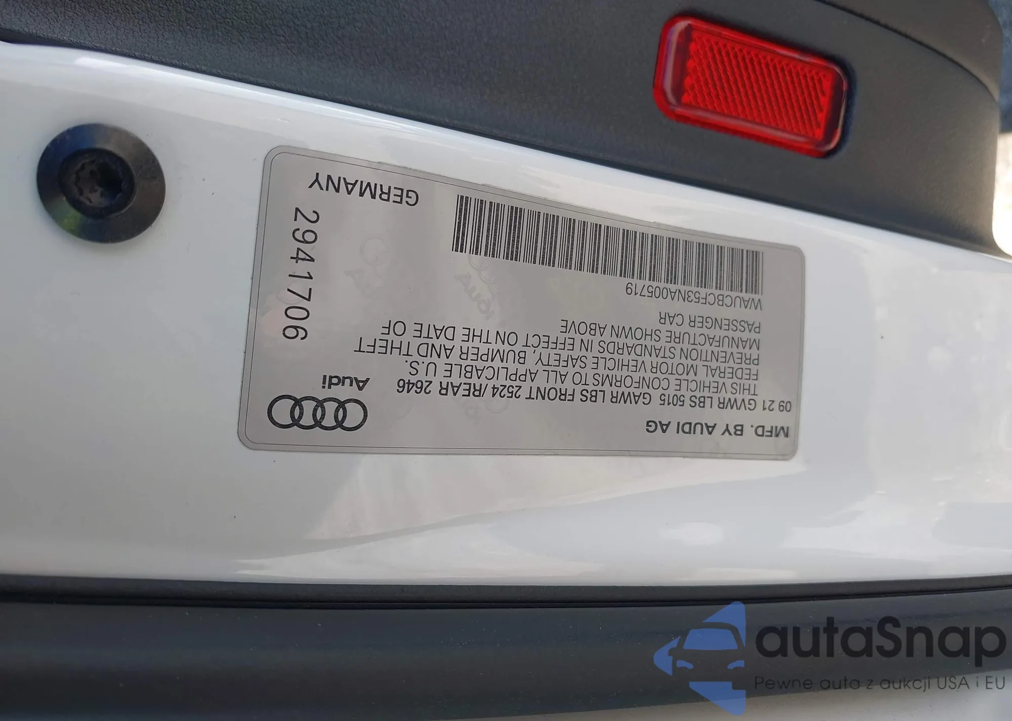 LOT: 44635412 VIN: WAUFACF51MA054853