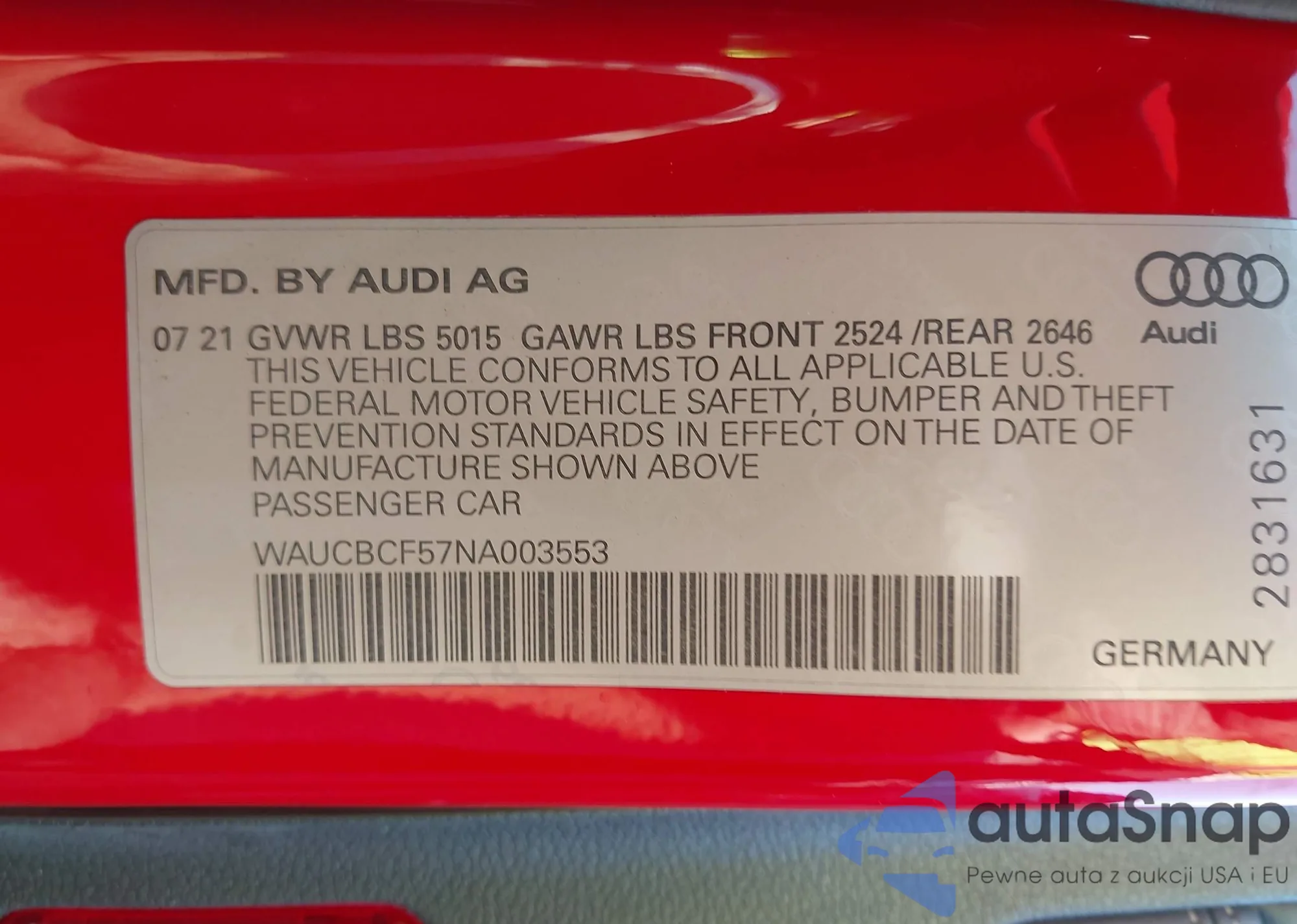 • VIN WAUCBCF57NA003553