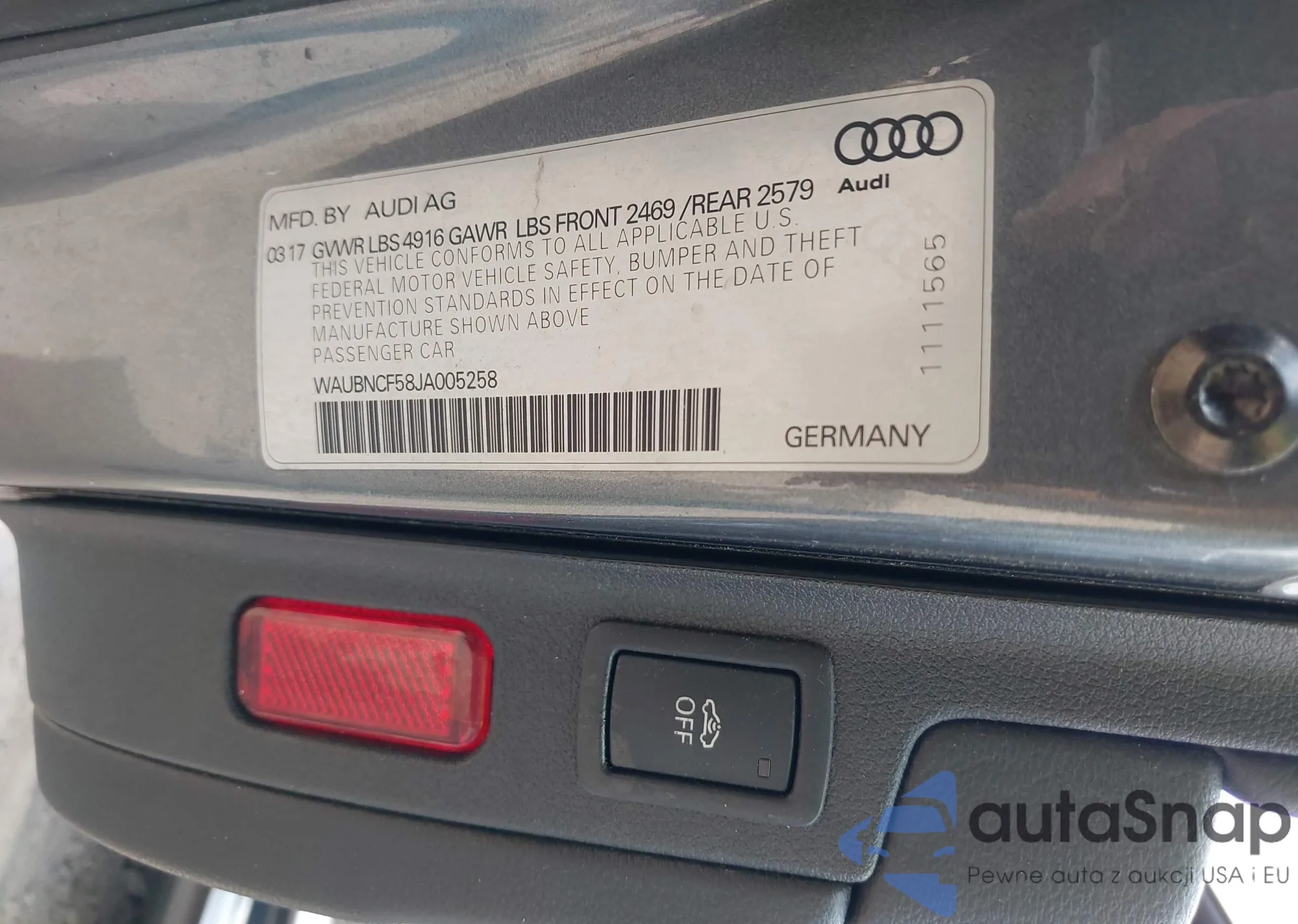 • VIN WAUBNCF58JA005258