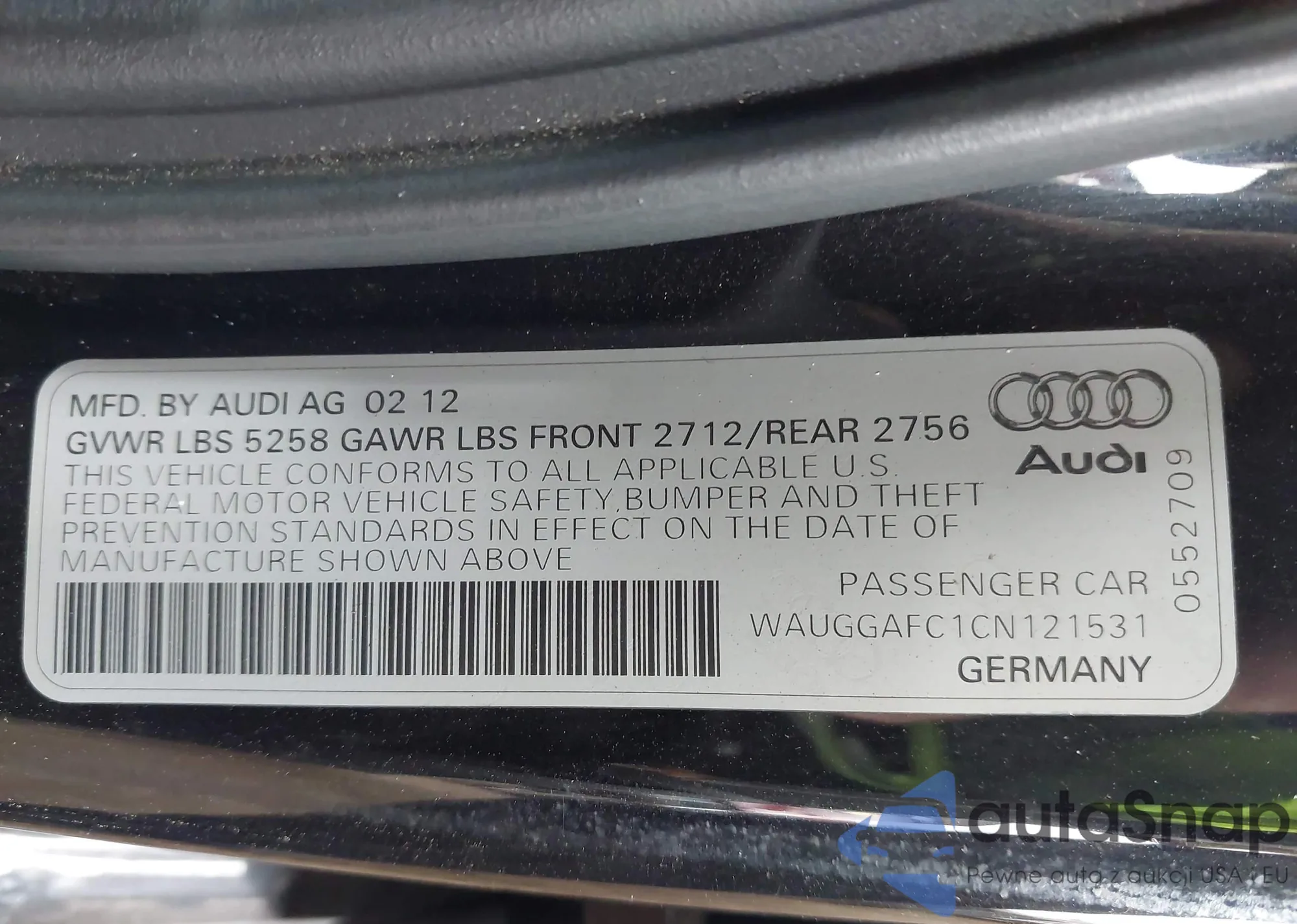 • VIN WAUGGAFC1CN121531