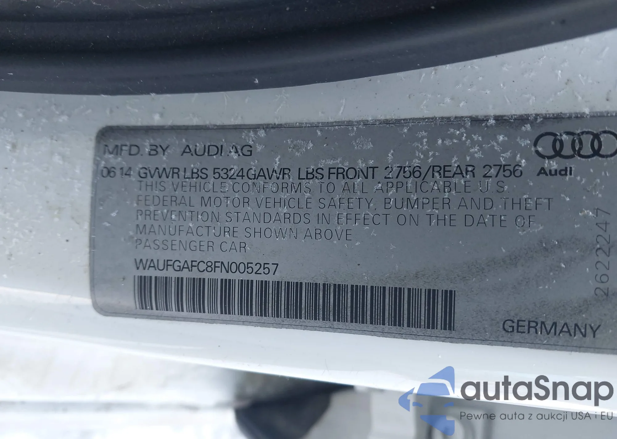 LOT: 43920329 VIN: WAUFGAFC8FN005257