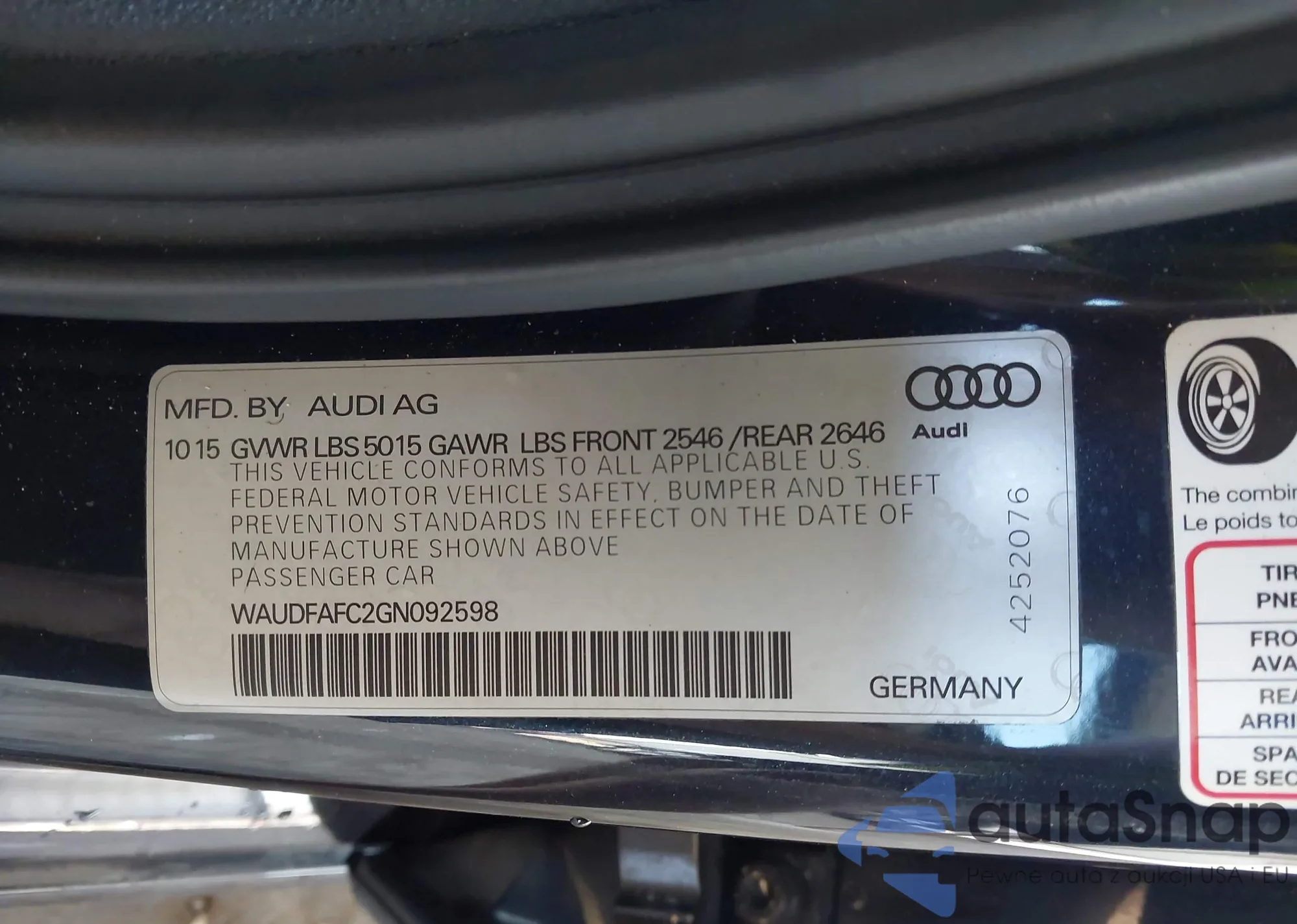 • VIN WAUDFAFC2GN092598