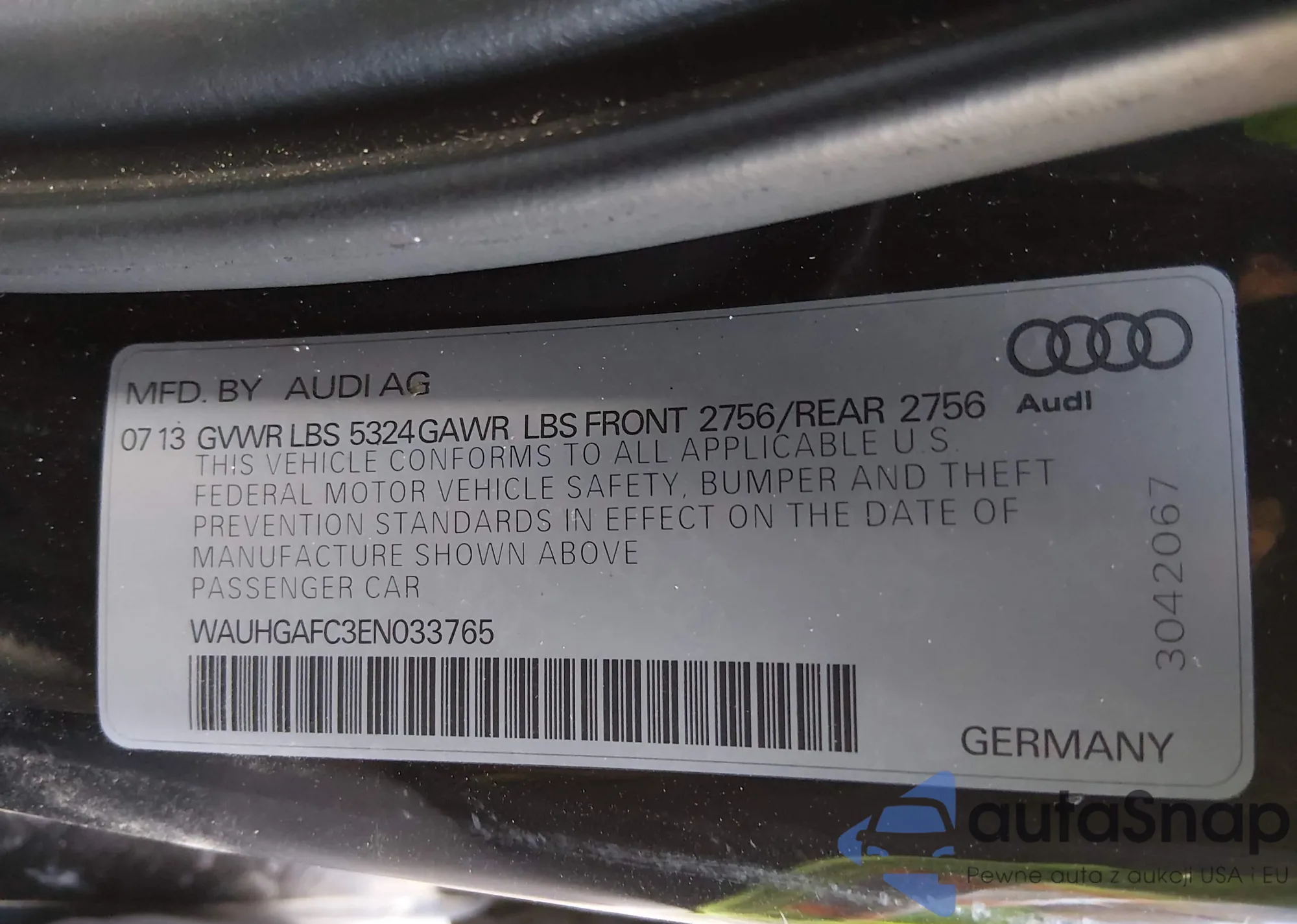 • VIN WAUHGAFC3EN033765