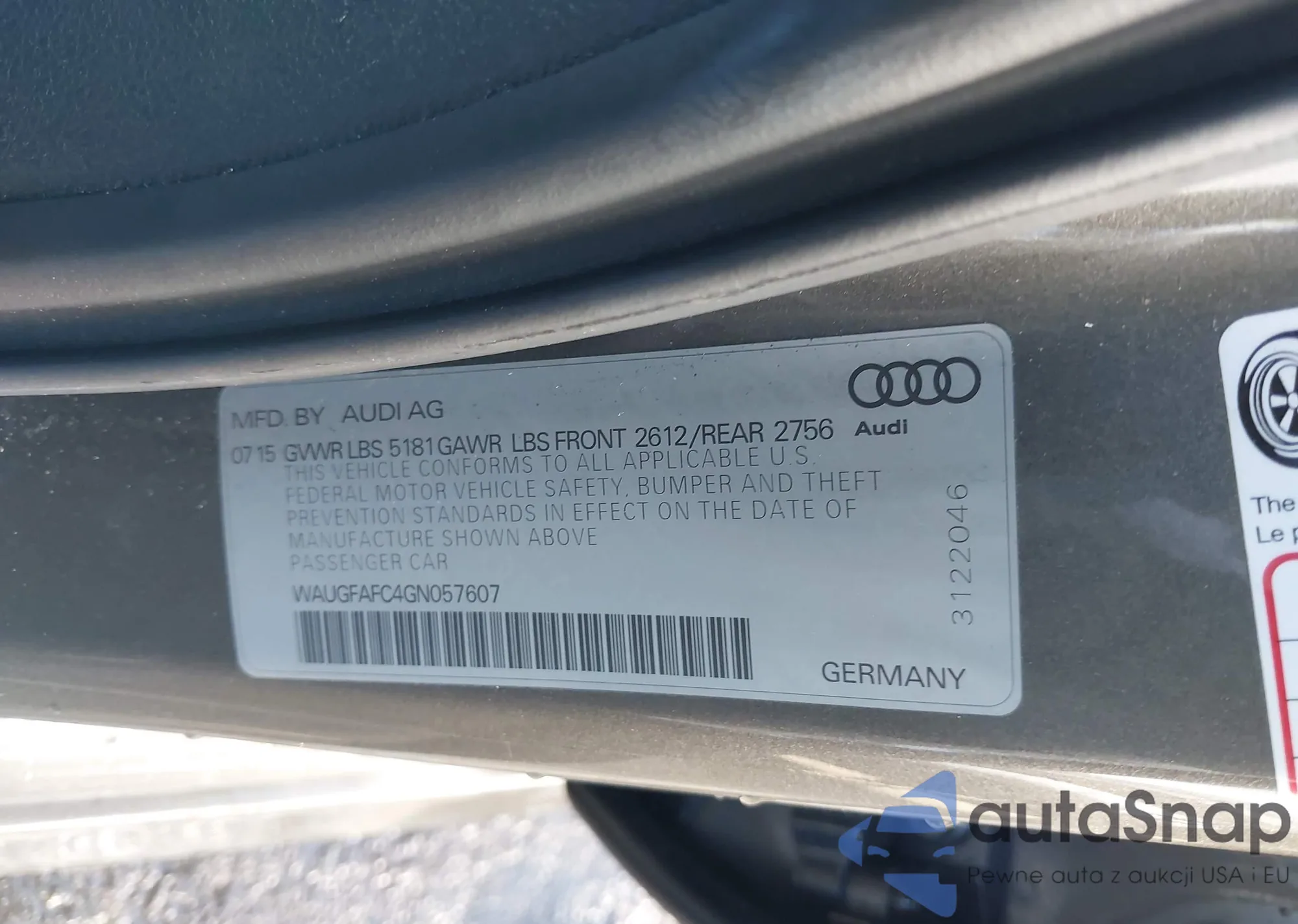 LOT: 44193077 VIN: WAUGFAFC4GN057607