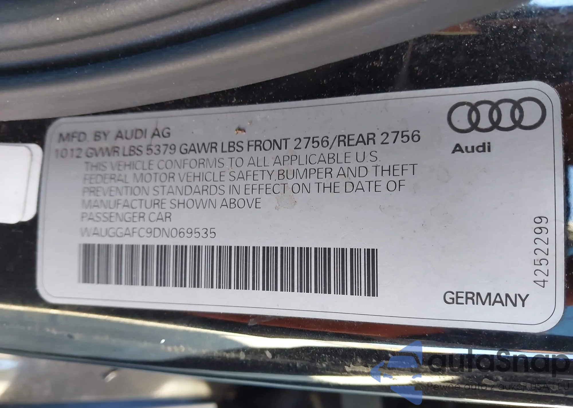 • VIN WAUGGAFC9DN069535