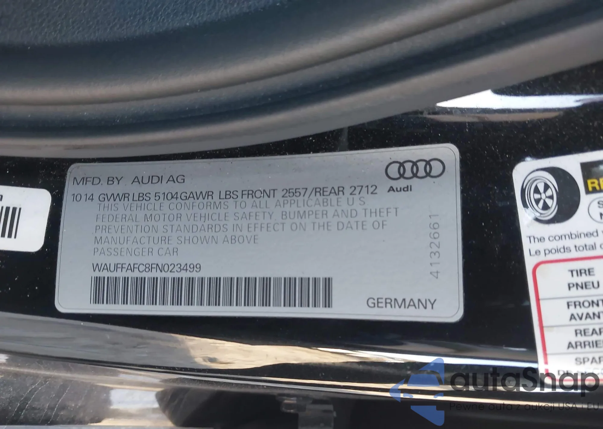 • VIN WAUFFAFC8FN023499