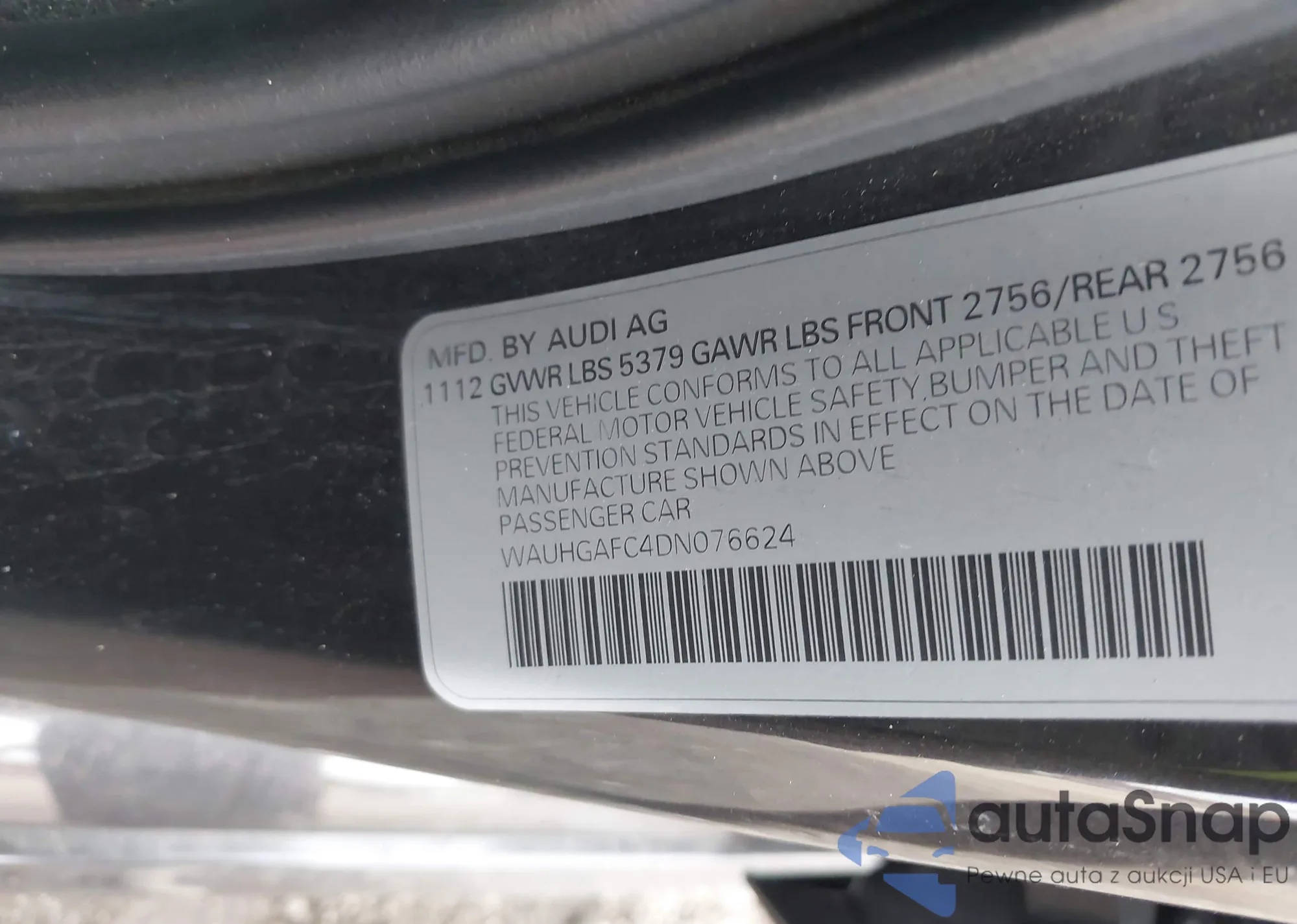 LOT: 43892744 VIN: WAUHGAFC4DN076624