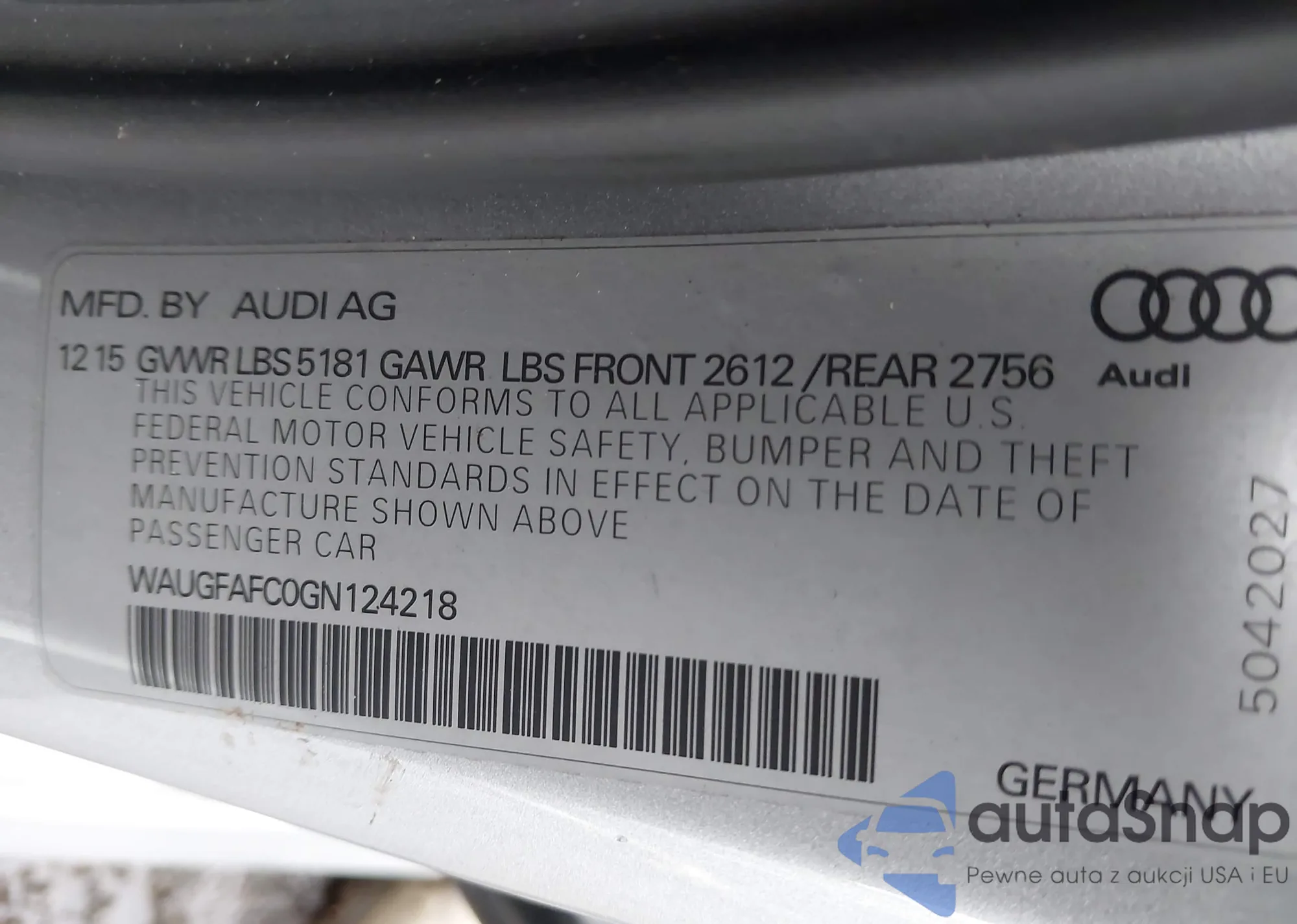 • VIN WAUGFAFC0GN124218