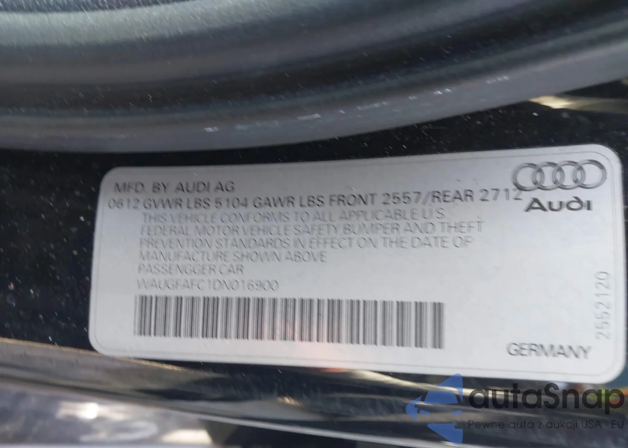 • VIN WAUGFAFC1DN016900