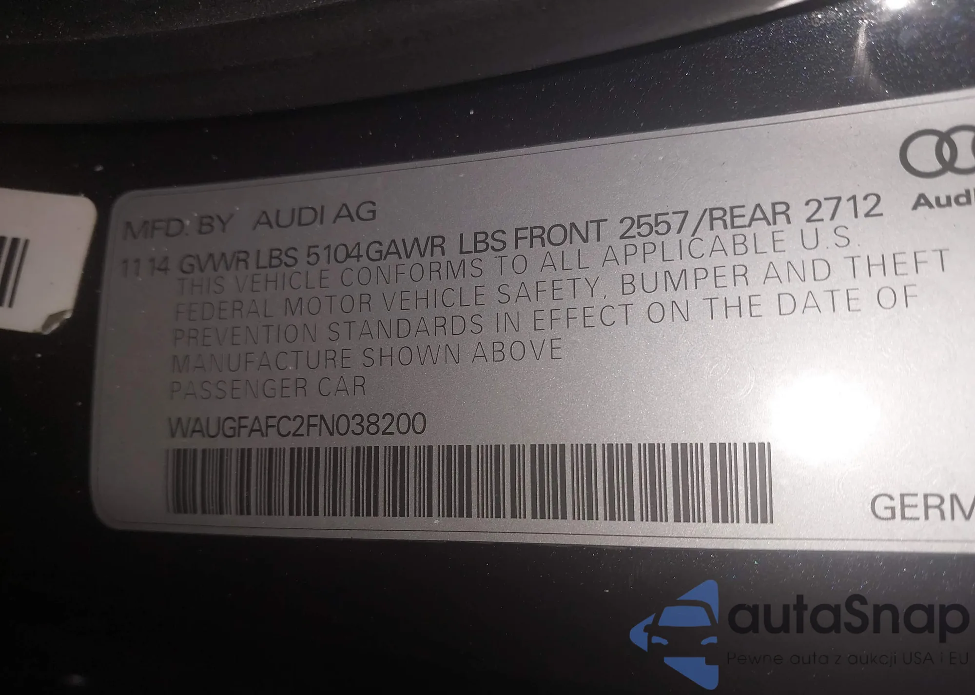LOT: 44230798 VIN: WAUGFAFC2FN038200