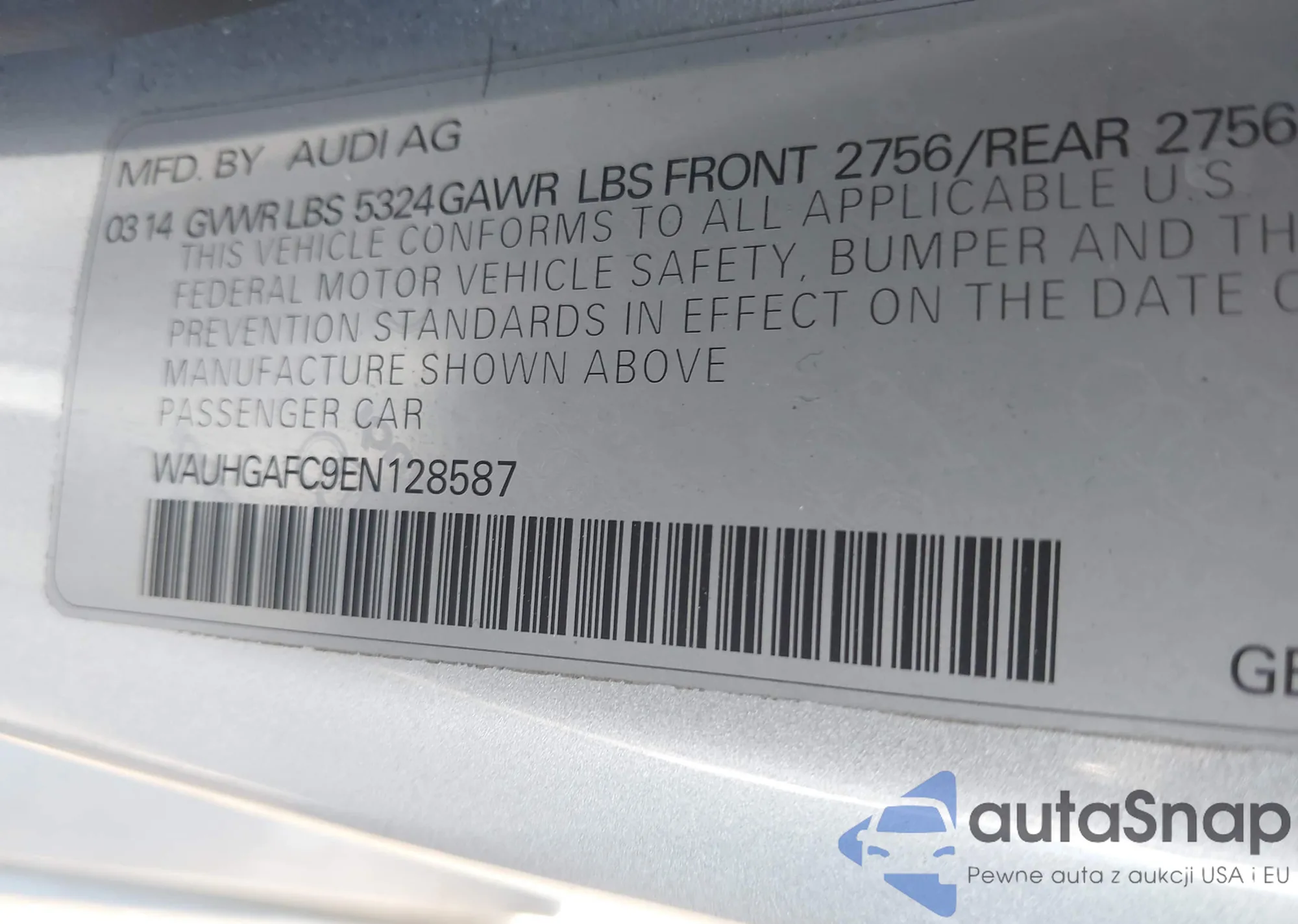 LOT: 73516655 VIN: WAUGFAFC2EN096175