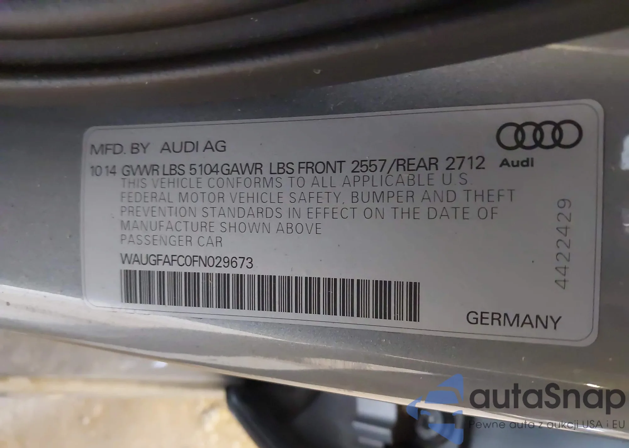 LOT: 44359918 VIN: WAUGFAFC0FN029673