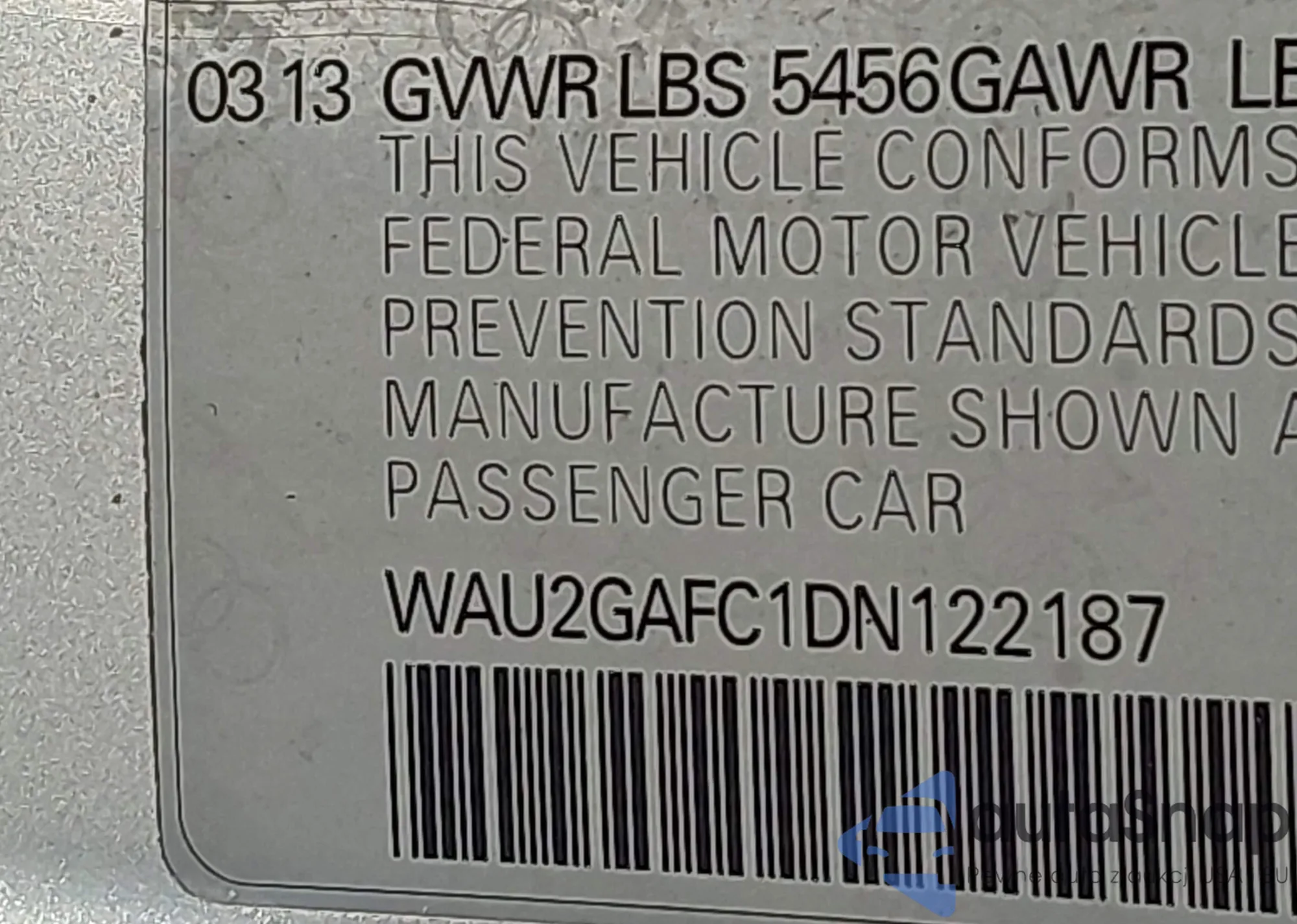 • VIN WAU2GAFC1DN122187