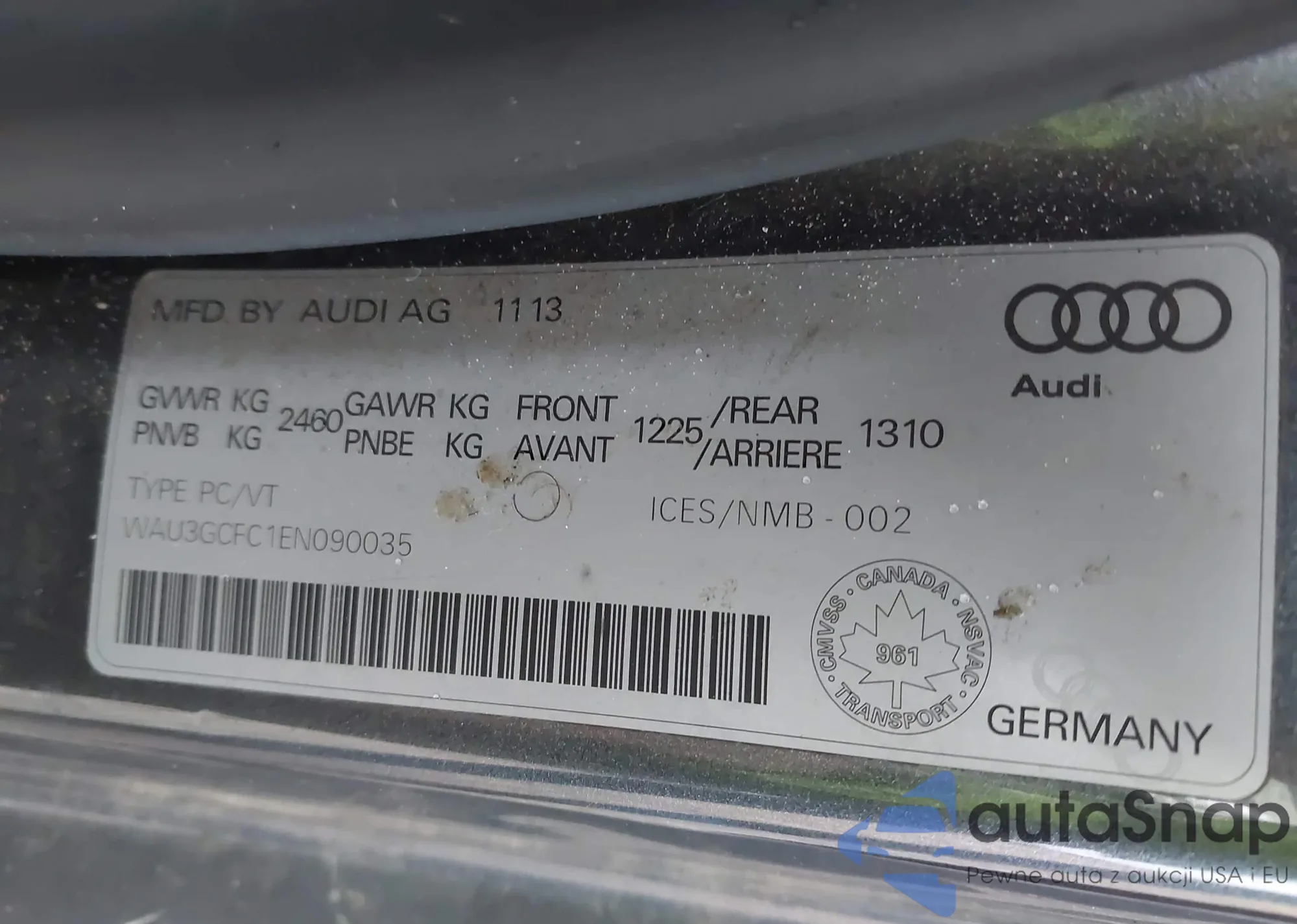 LOT: 44272386 VIN: WAU3GCFC1EN090035