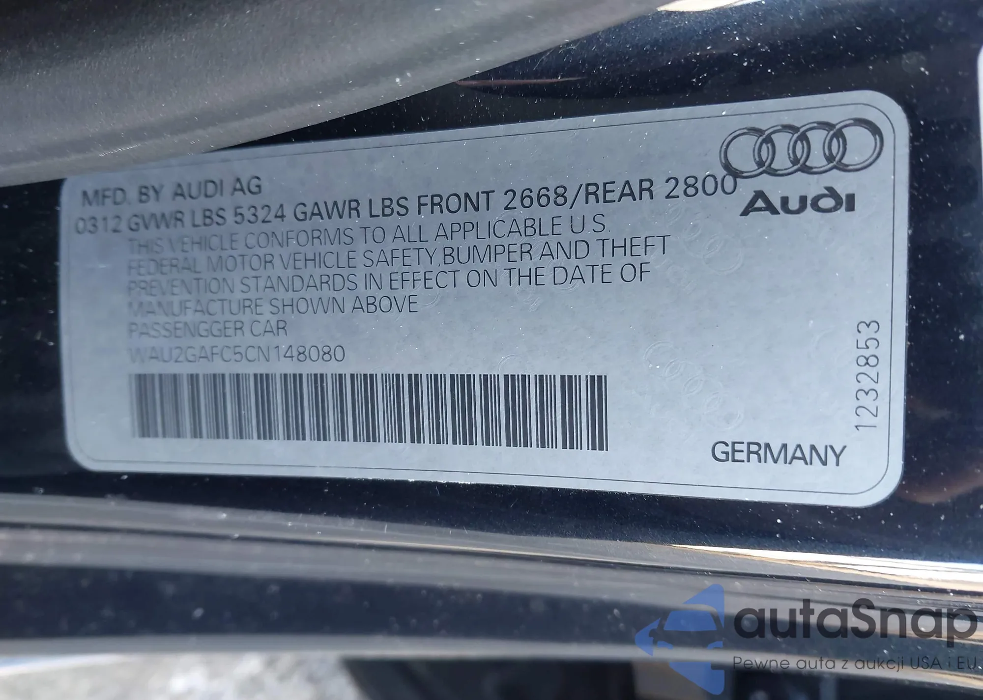 LOT: 44301651 VIN: WAU2GAFC5CN148080