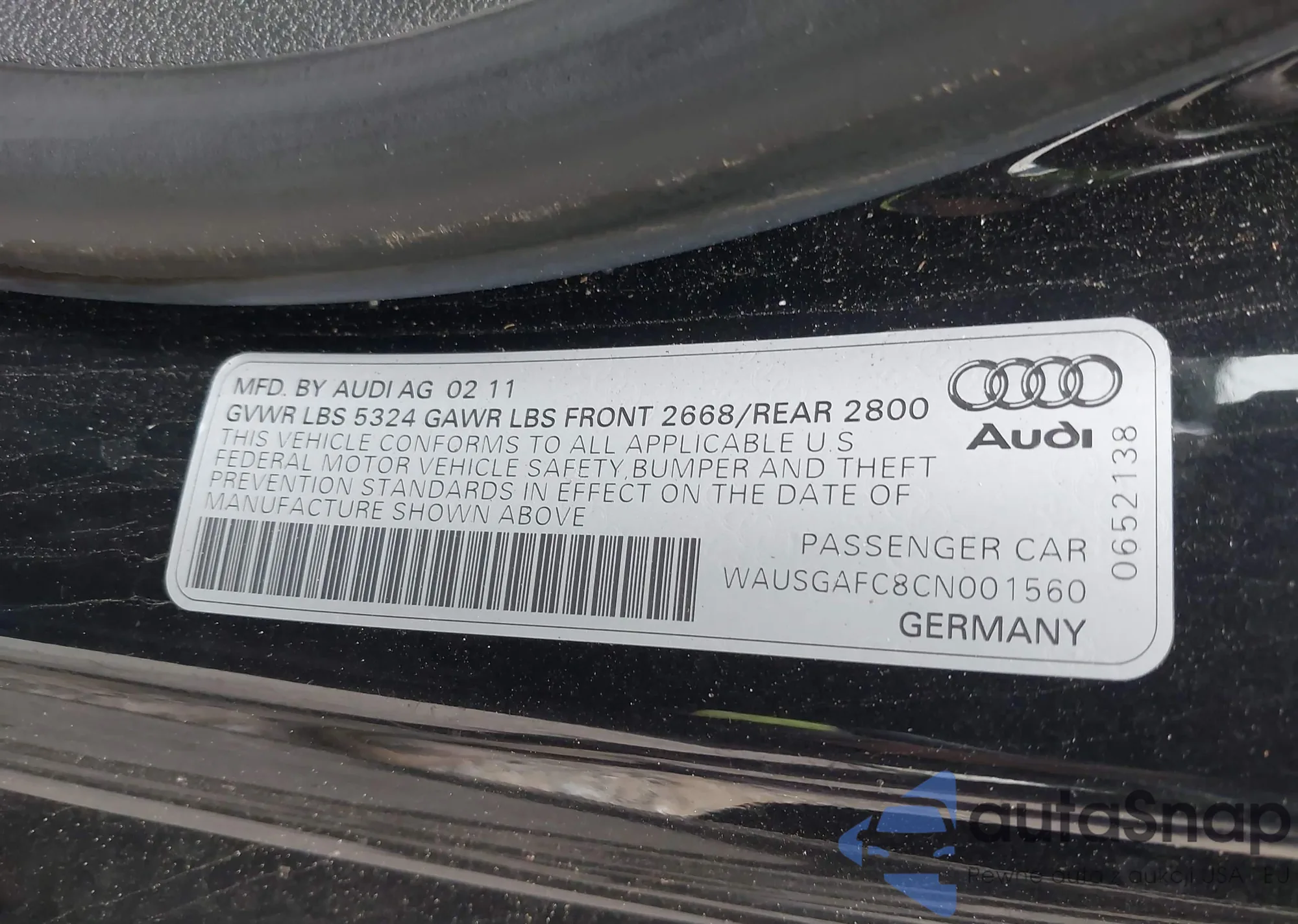 • VIN WAUSGAFC8CN001560